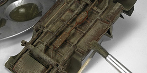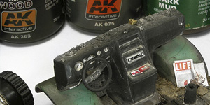 Using AK4061 Sand Yellow Deposits , AK4062 Light Dust Deposit, and AK143 Burnt Umber pigment work on the wheels until you achieve a realistic and convincing result.