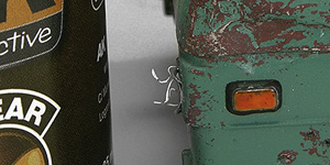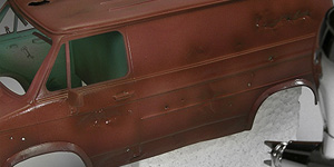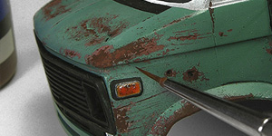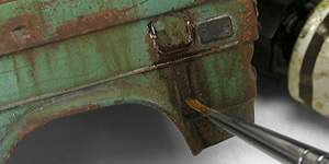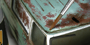 With a finer brush make the smallest chipping and scratches on the sides of the van.