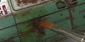 Over the van previously painted with brown colors apply using the airbrush AK088 Worn Effects Acrylic Fluid, to make later the chipping.