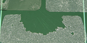 To simulate the broken glass cut over a template the shape achieved with the product Ice sparkles.