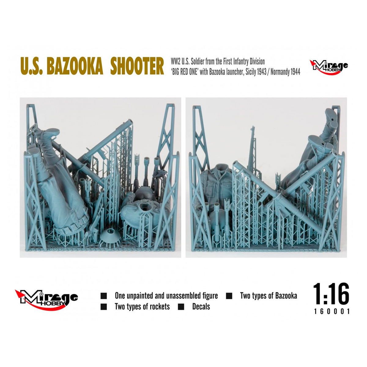 Mirage Hobby 1/16 U.S. Bazooka Shooter – WW2 US Soldier From The Infantry Division «Big Red One» With Bazooka Launcher Bazooka Shooter – Sicily 1943 / Normandy 1944