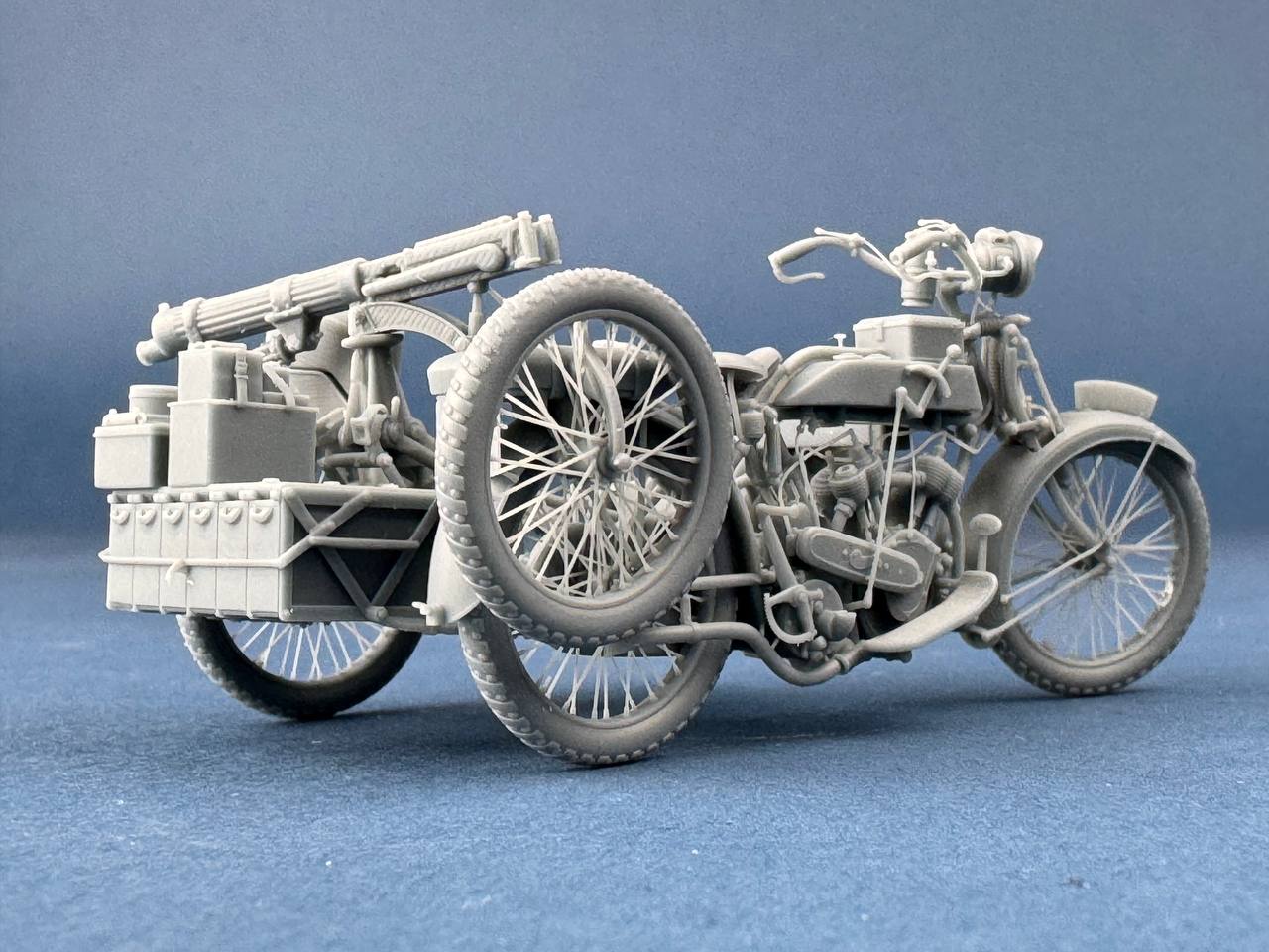 Clyno built large numbers of motorcycles for the British Army throughout the First World War. The majority were sidecar outfits designed to carry a Vickers machine gun. Each carried ammunition, cooling water and spares for the gun together with petrol and spares for the motorbike. An outfit like this would have been accompanied by two others; one carried extra ammunition and the other was a spare gun carrier, brought into use if the first bike broke down. At the Armistice in 1918 the British armed forces had 1,792 Clyno motorcycles, 1,150 at home and 642 overseas, including 478 in France.