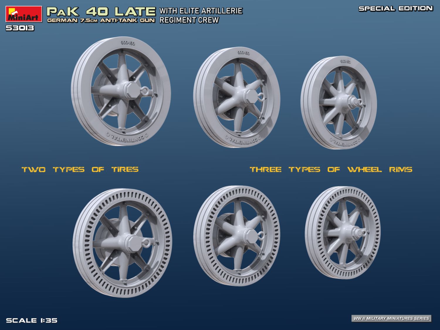 El PaK 40 de 7,5 cm fue la columna vertebral de las defensas antitanque alemanas durante la Segunda Guerra Mundial, capaz de derrotar incluso a los blindados más pesados de los Aliados. Este kit de edición especial representa la variante de producción tardía, acompañada por una tripulación de un regimiento de artillería de élite en dinámicas poses de combate. Esta maqueta a escala 1:35 captura la precisa ingeniería del cañón y su presencia en el campo de batalla, con figuras, munición y detalles realistas perfectos para dioramas.