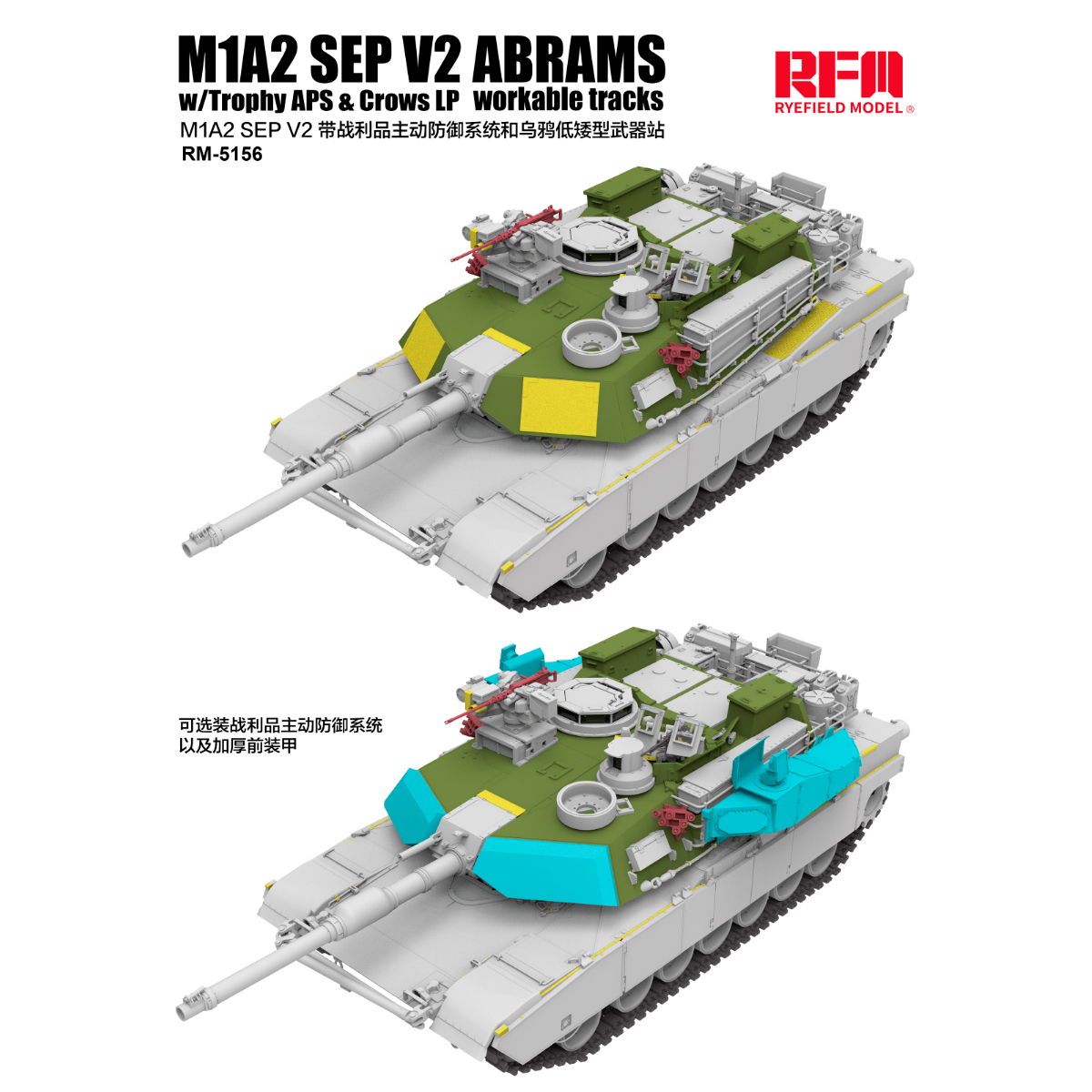 Rye Field Model: M1A2 SEP V2 Abrams a escala 1/35 con sistema Trophy APS y CROWS LP, con orugas funcionales
