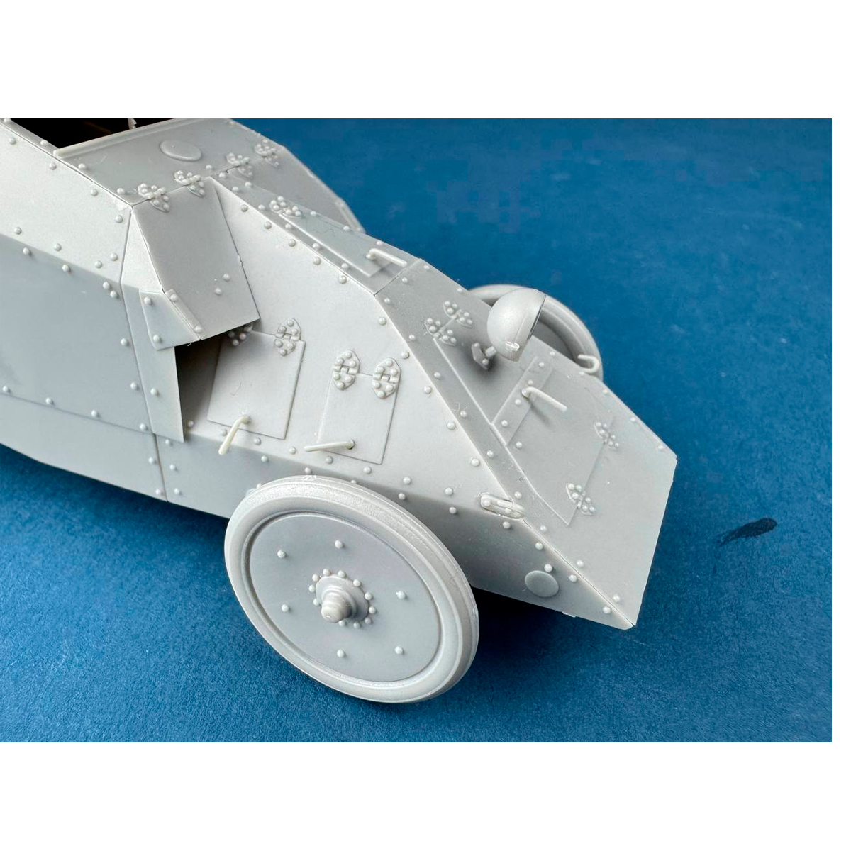 The Mgebrov-R armoured car is a highly detailed plastic model kit representing one of the most distinctive and technically ambitious Russian armoured vehicles of the First World War. Designed under the leadership of engineer A. N. Mgebrov, this vehicle combined innovative armour layouts with advanced protective concepts for its era. Although produced only in limited numbers, the Mgebrov-R became a remarkable example of early Russian armoured car development and remains an important historical prototype.