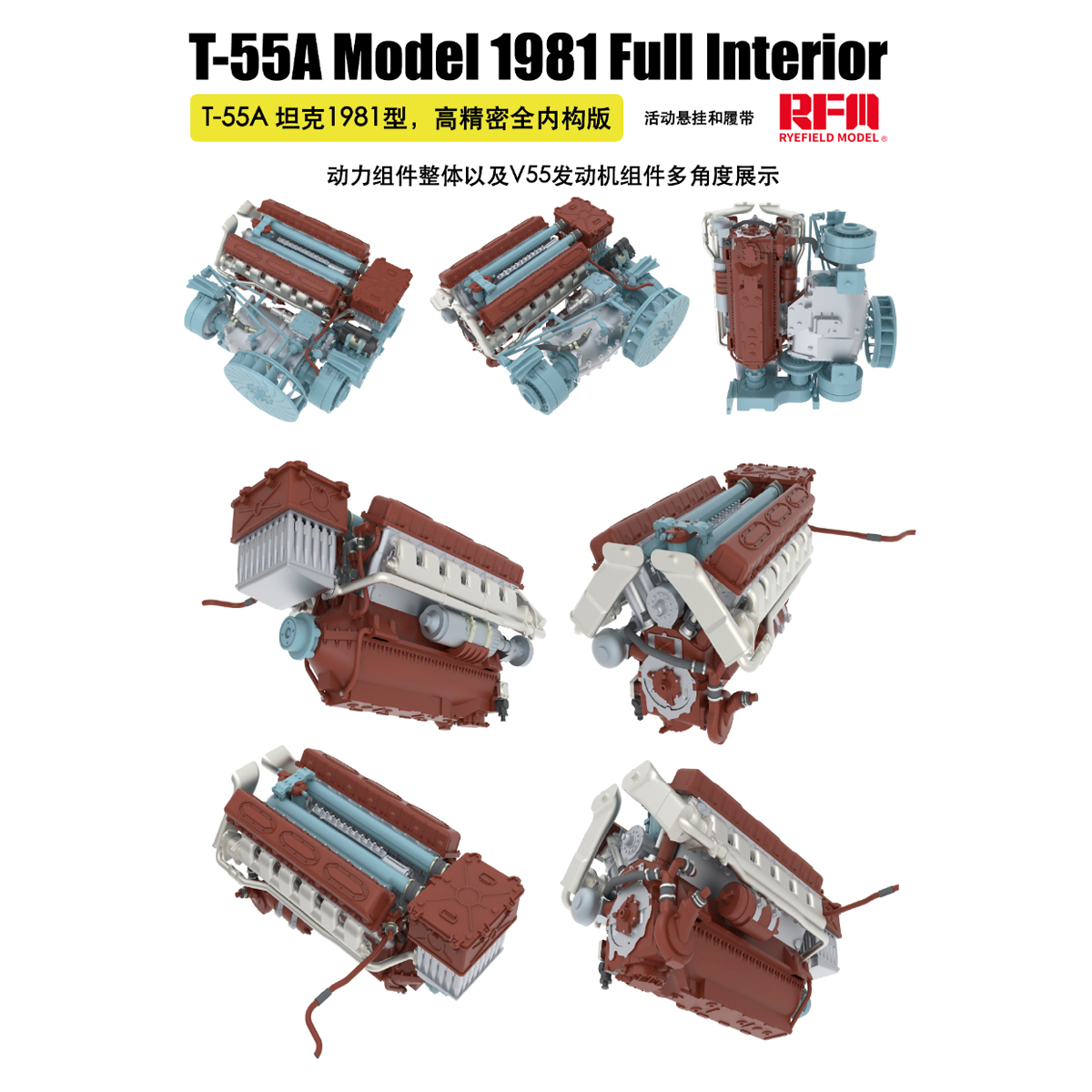 Rye Field Model 1/35 T-55A Model 1981 Full Interior w/ Workable Tracks