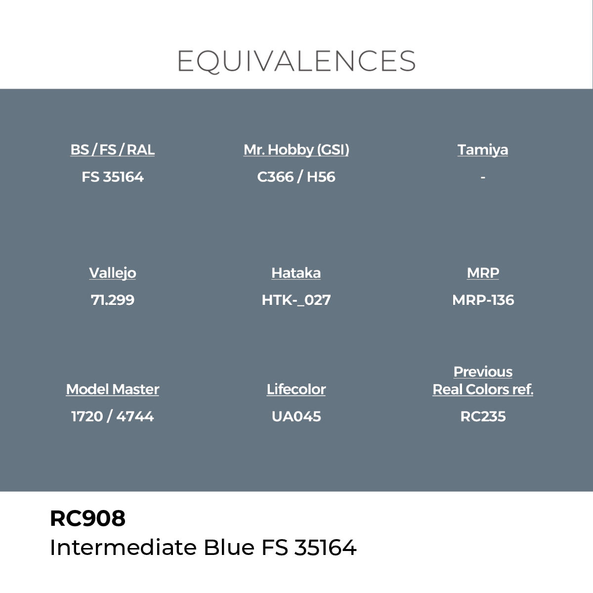 Una buena equivalencia con uno de los colores del esquema de camuflaje de aviones con base en portaaviones utilizado por la US Navy & USMC desde enero de 1943 hasta marzo de 1944 (cazas)/junio de 1944 (efectivamente octubre de 1944; otros tipos de aviones).
