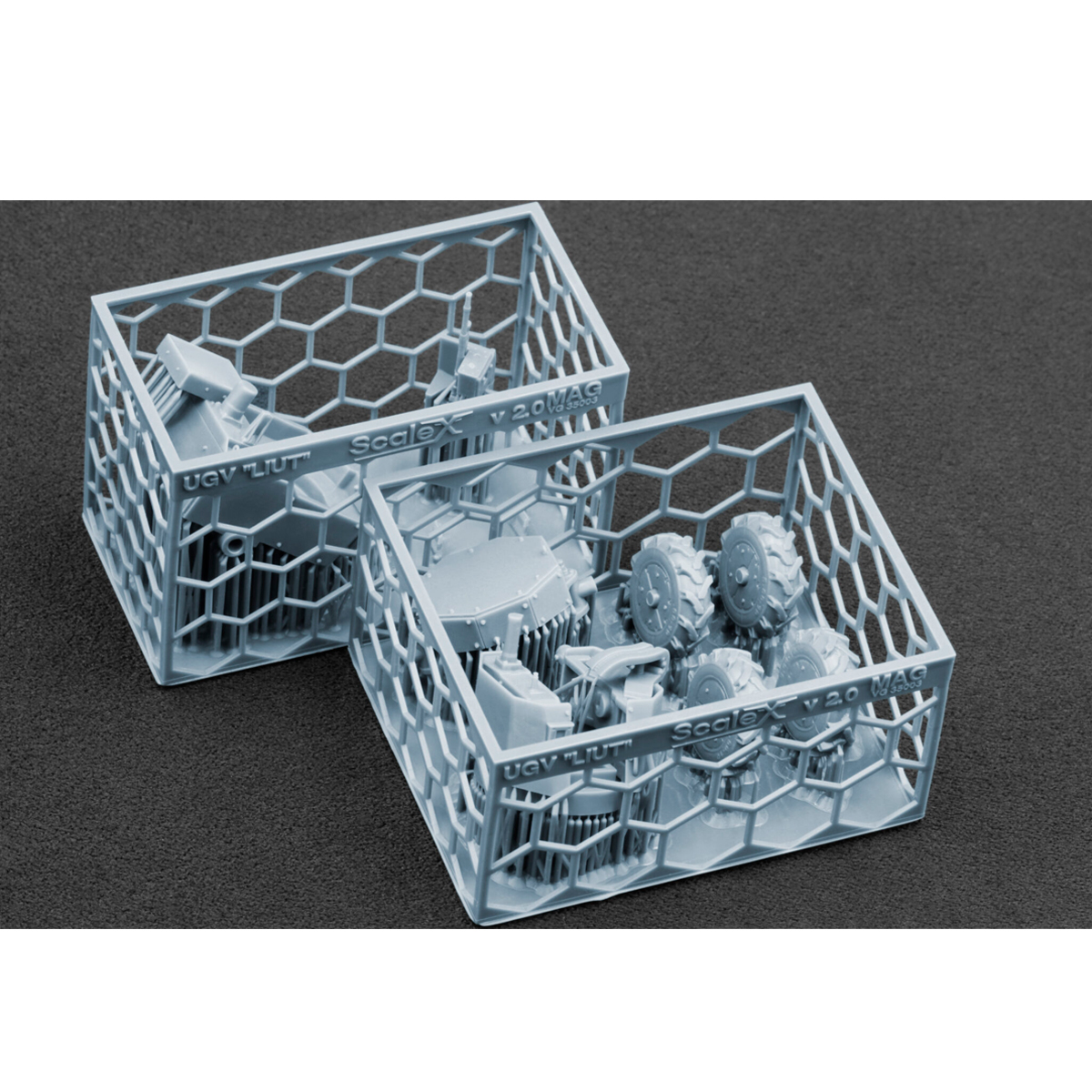 Maqueta a escala impresa en 3D del UGV «Liut» v2.0, MAG 1/35 con ametralladora FN MAG.