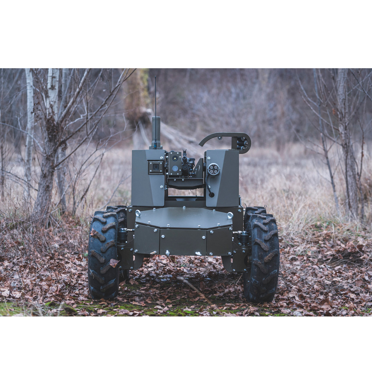 The Liut drone, in various configurations, is equipped with either a PKT or MAG machine gun and is designed for infantry fire support, engaging targets from cover, or remote defense. The platform is remotely operated, significantly reducing risk to personnel in high-threat environments.