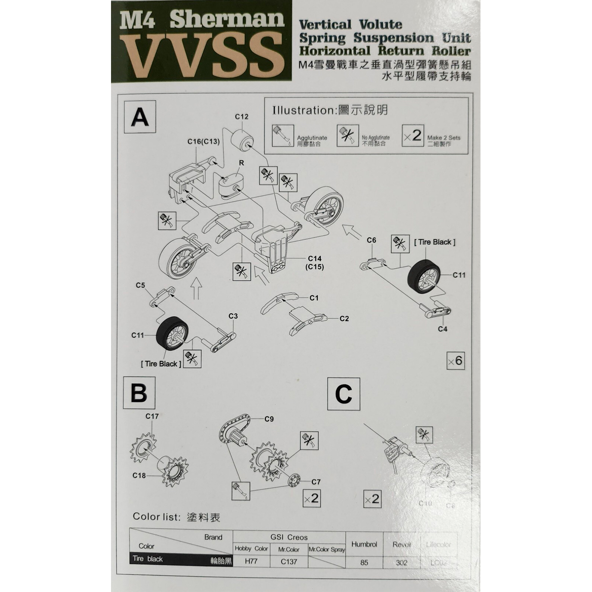 AFV Club 1/35 M4 Sherman VVSS – Vertical Volute Spring Suspension Unit (Horizontal Return Roller)
