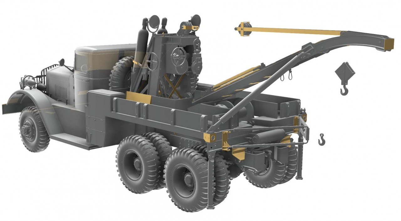 The M1 were produced in five different models (Series 1, Series 2, Series 3 , Series 4 and Series 5). The Series 4 came in 1943, total of 400 wreckers series 4 were produced. The most obvious feature was the curved end of slightly extended crane boom and larger fuel tank filler caps, together with military type dashboard instruments and improved air filter