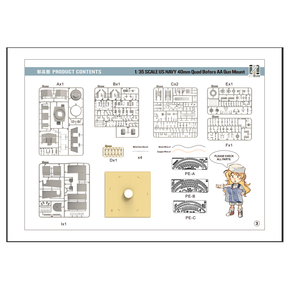 Zimi Model 1/35 US Navy 40mm Quad Bofors AA Gun Mount