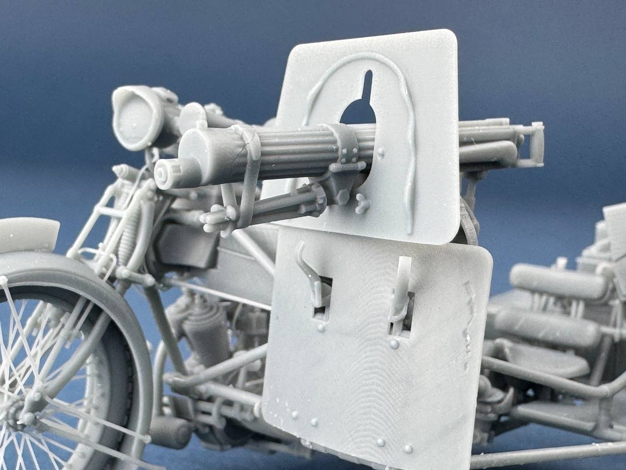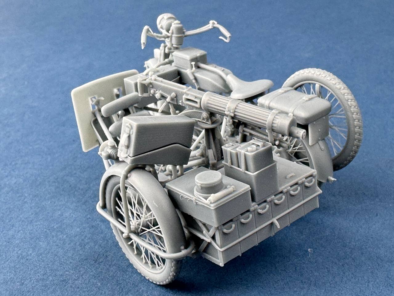 Clyno manufactured a large number of motorcycles for the British Army during World War I. Most were sidecar assemblies designed to carry a Vickers machine gun. Each carried ammunition, cooling water, and spare parts for the gun, along with gasoline and spare parts for the motorcycle. A motorcycle like this was accompanied by two others: one carried additional ammunition, and the other was a spare motorcycle, which was used if the first one broke down.