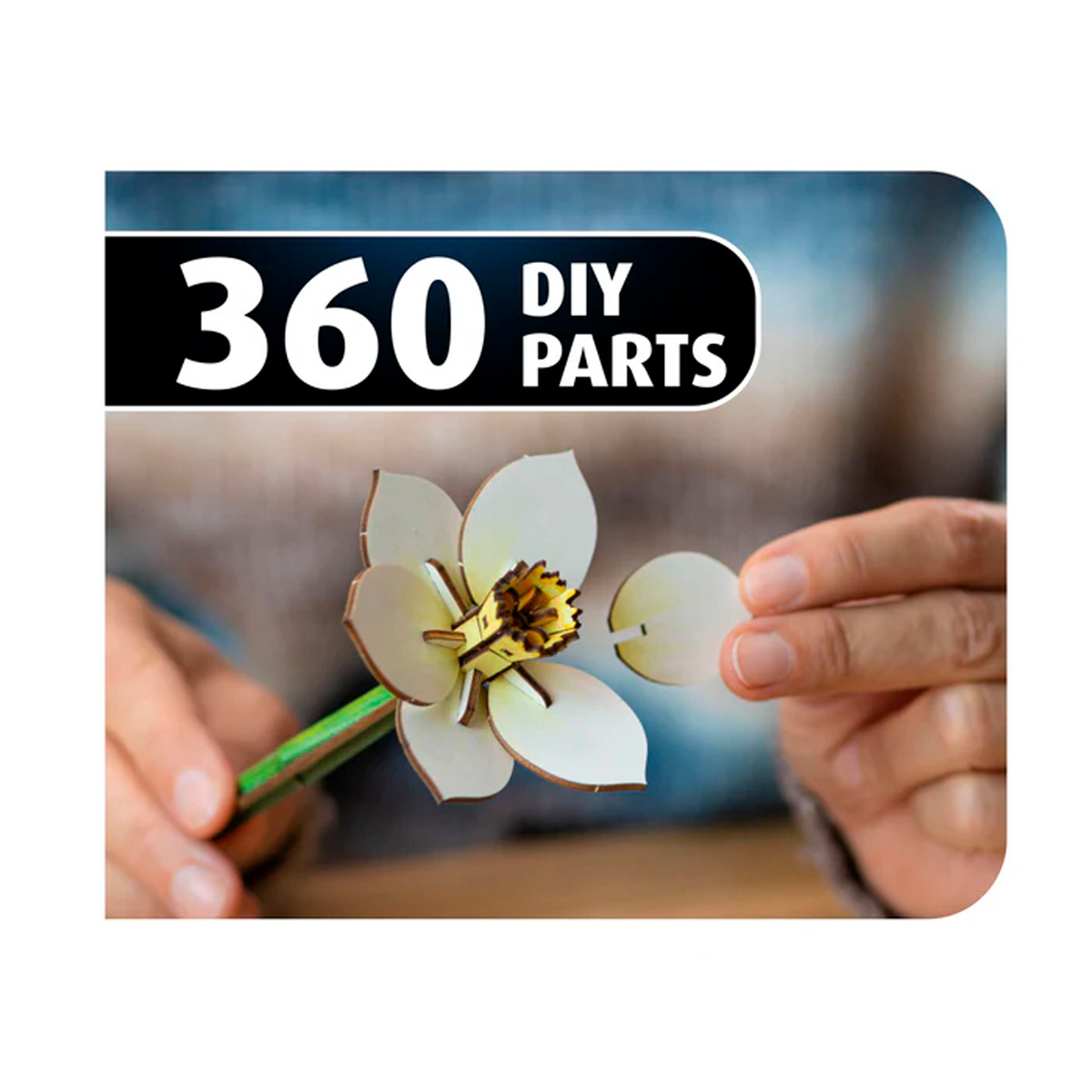 Las flores frescas te hacen sonreír al instante, pero, por desgracia, su belleza suele desaparecer demasiado rápido. Con el set «Festival de las Flores» puedes cambiar eso. Crearás una obra de arte floral que nunca se marchita y que te proporcionará alegría duradera. Este kit de madera de alta calidad combina la paz meditativa de la manualidad con una decoración elegante para el hogar. El resultado es un exuberante ramo tan delicadamente elaborado que hay que mirar dos veces para darse cuenta: es madera, no flores frescas. Perfecto para cualquiera que quiera alegrar su hogar o esté buscando un regalo con valor duradero.