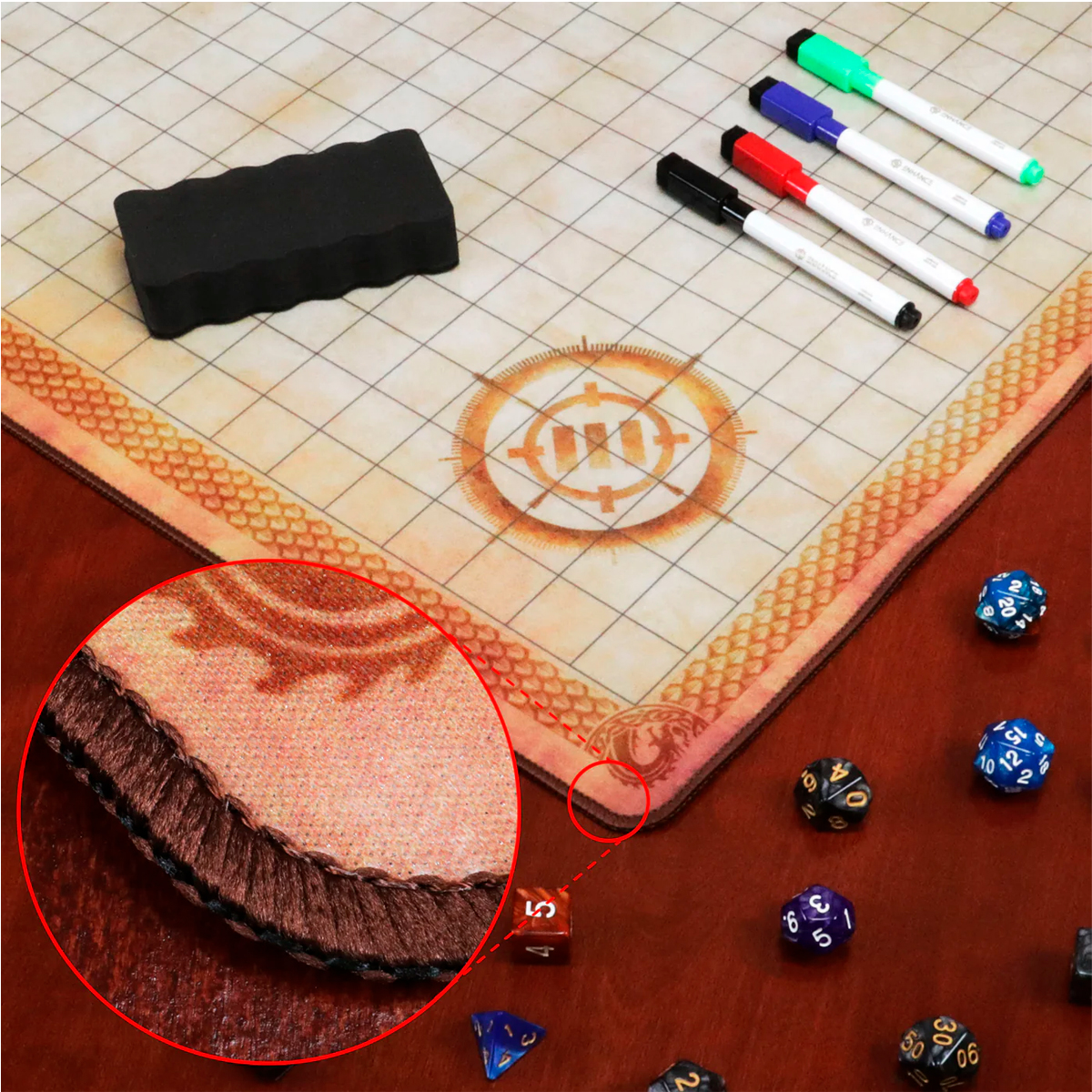 ERASABLE PARCHMENT MAT – The grid map has a 3-layer construction and a premium gloss lamination that works with dry and wet erase markers for boundless terrain creativity that won’t ghost or stain