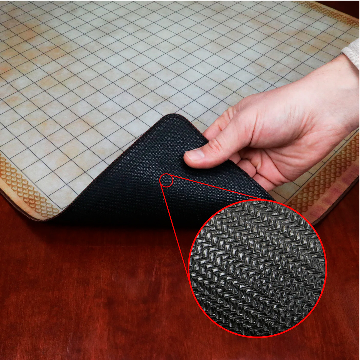 HIGH QUALITY CONSTRUCTION: Premium rubber battle mat with its anti-fray stitching and non-slip grip, ensures that the DnD map will not crease or curl up allowing for the mat to lay flat on the surface
