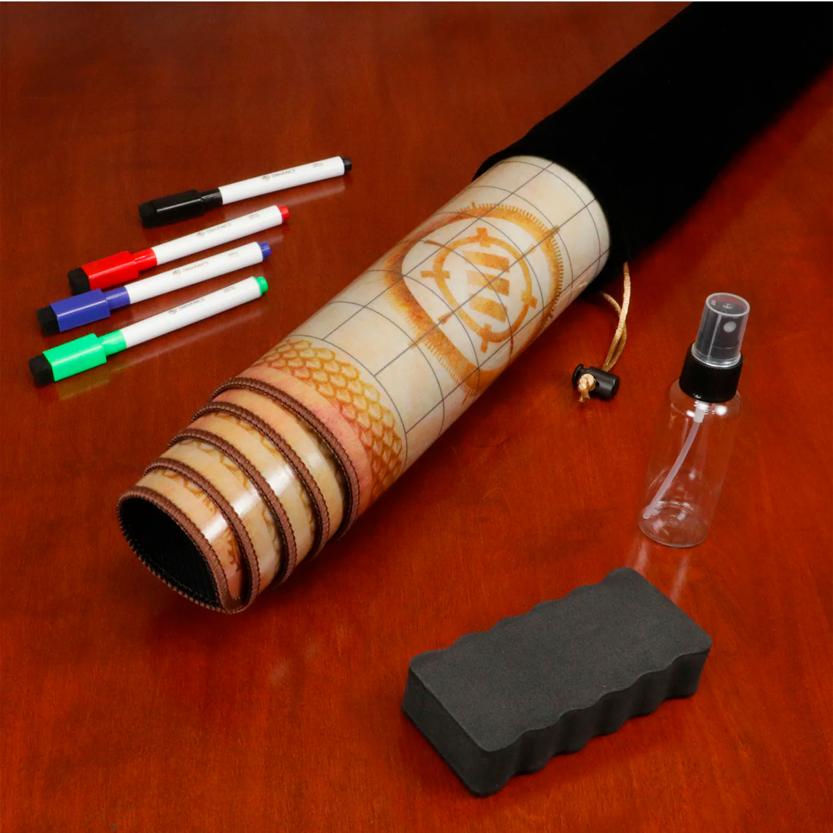 KIT DE CAMPAÑA COMPLETO PARA TODOS TUS JUEGOS DE ROL: incluye una alfombrilla de cuadrícula de lujo de una sola cara (61 cm x 91 cm), una bolsa de viaje para el rollo de batalla, un juego de rotuladores de colores de borrado en seco, un bote de spray vacío y un borrador de borrado en seco.