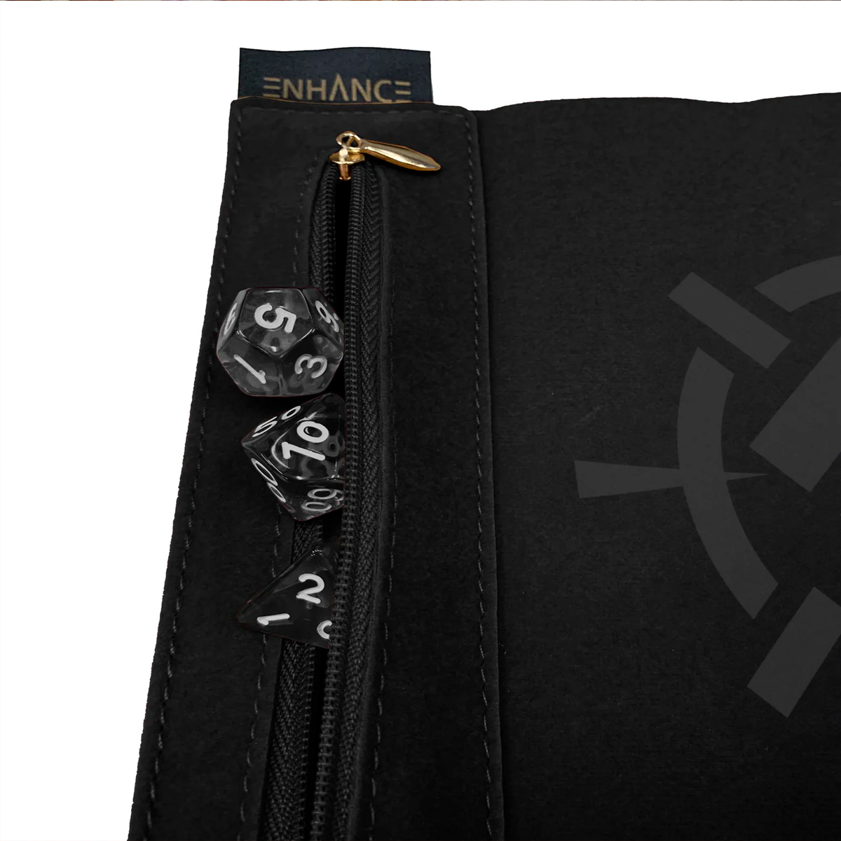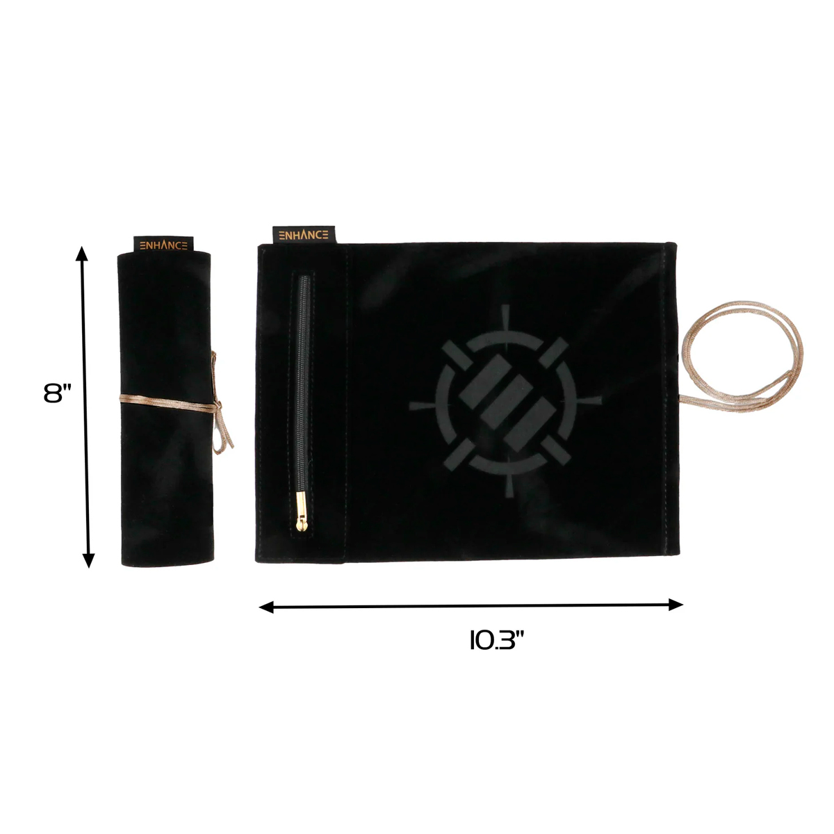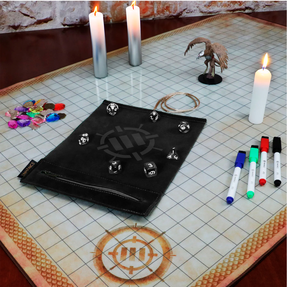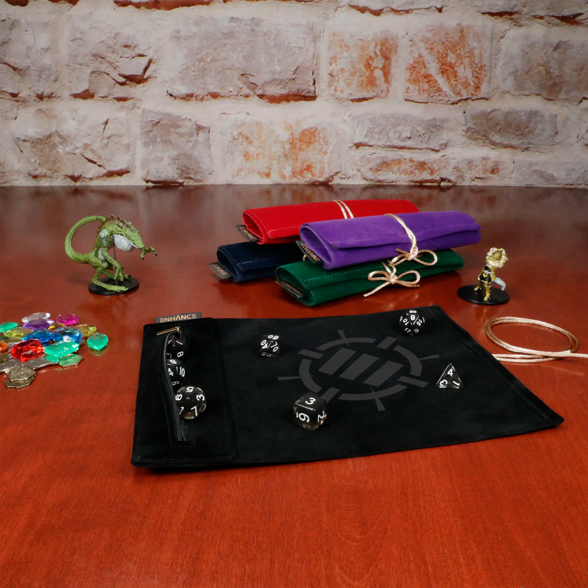 PORTABLE & COMPACT: This dice rolling mat and dice case easily rolls up and ties with the bronze string making this easy to transport especially in other ENHANCE tabletop bags and backpacks