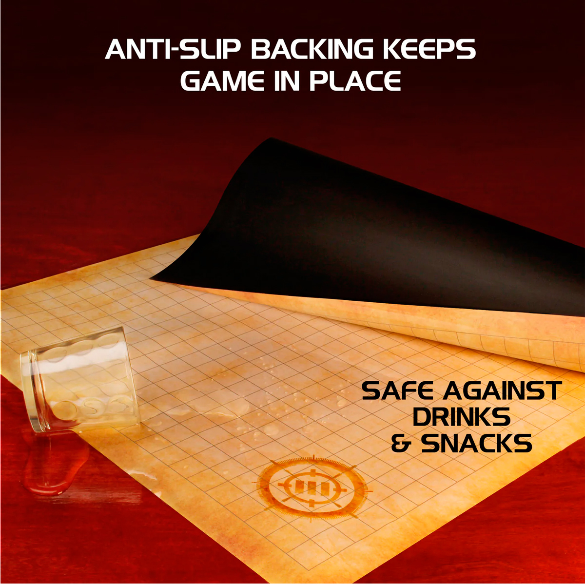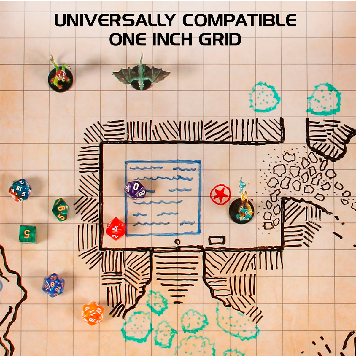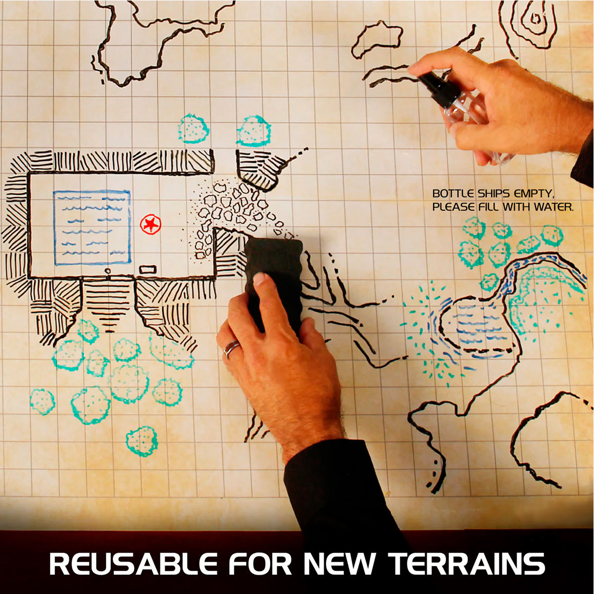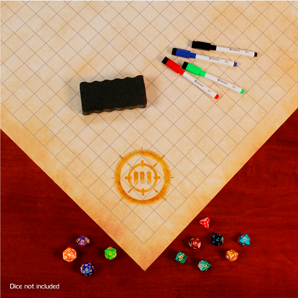 ERASABLE PARCHMENT MAP – The grid mat has a 3-layer construction and a premium gloss lamination that works with dry and wet erase markers for boundless terrain creativity that won’t ghost or stain
