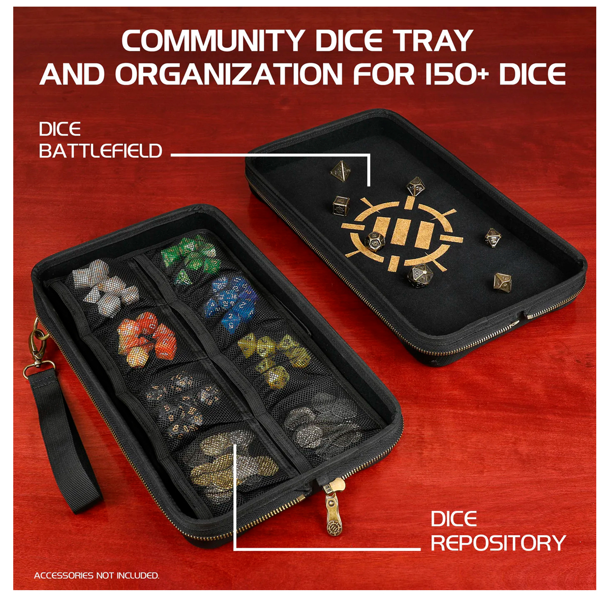 3-in-1 DESIGN: Store, organize, and roll your dice with a heavy-duty zippered design that can hold up to 500+ dice; Keep both sides of the case together for storage or easily detach during gameplay