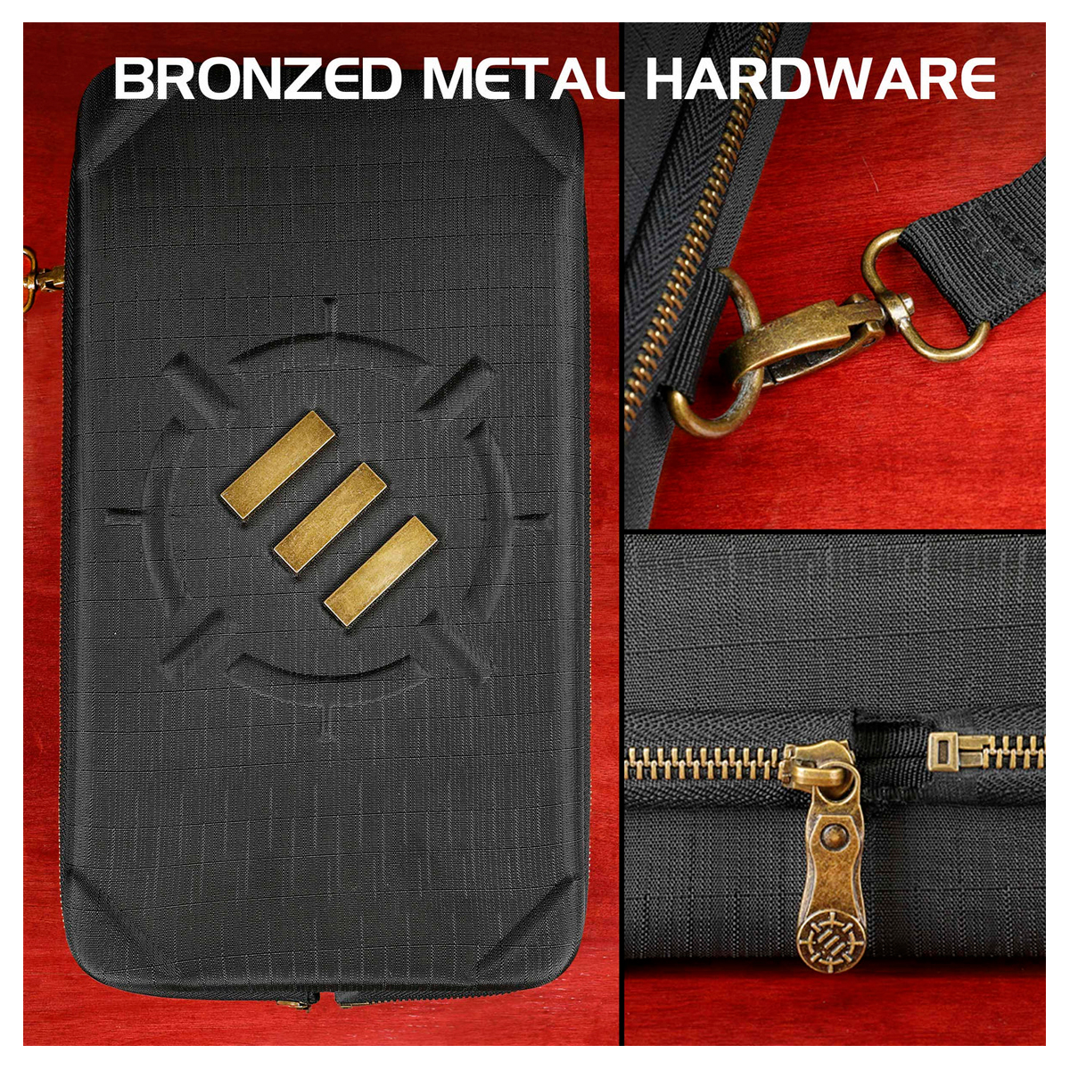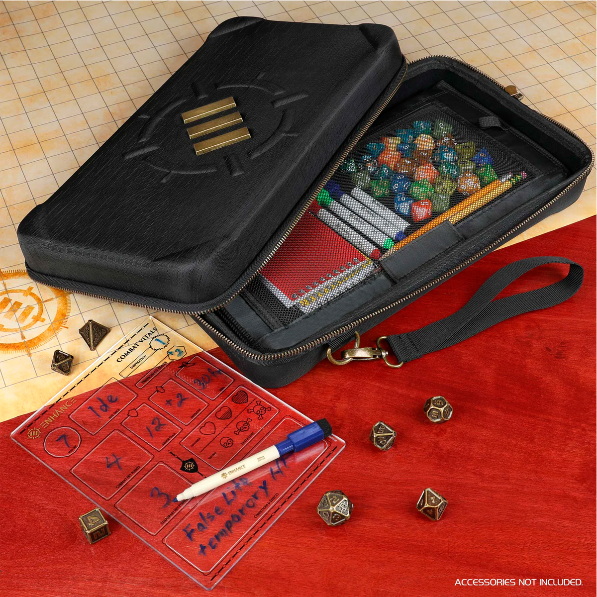 HEAVY-DUTY ANCIENT BRONZE: Worn-finished metal hardware and a built-in hand strap feel stylishly in theme with all your fantasy RPG games and all the ENHANCE Tabletop Series gear