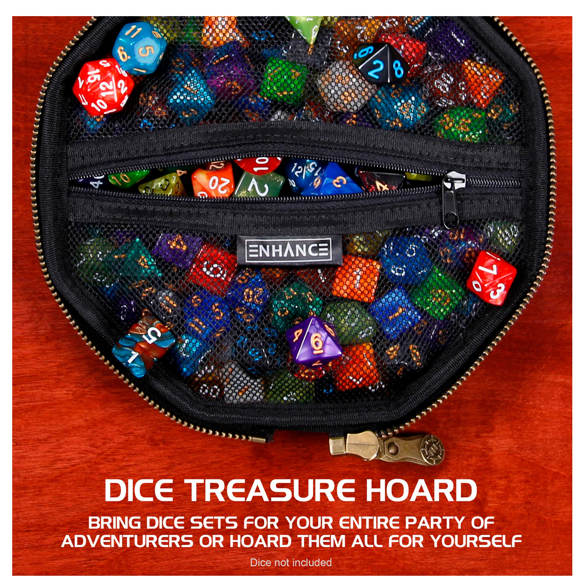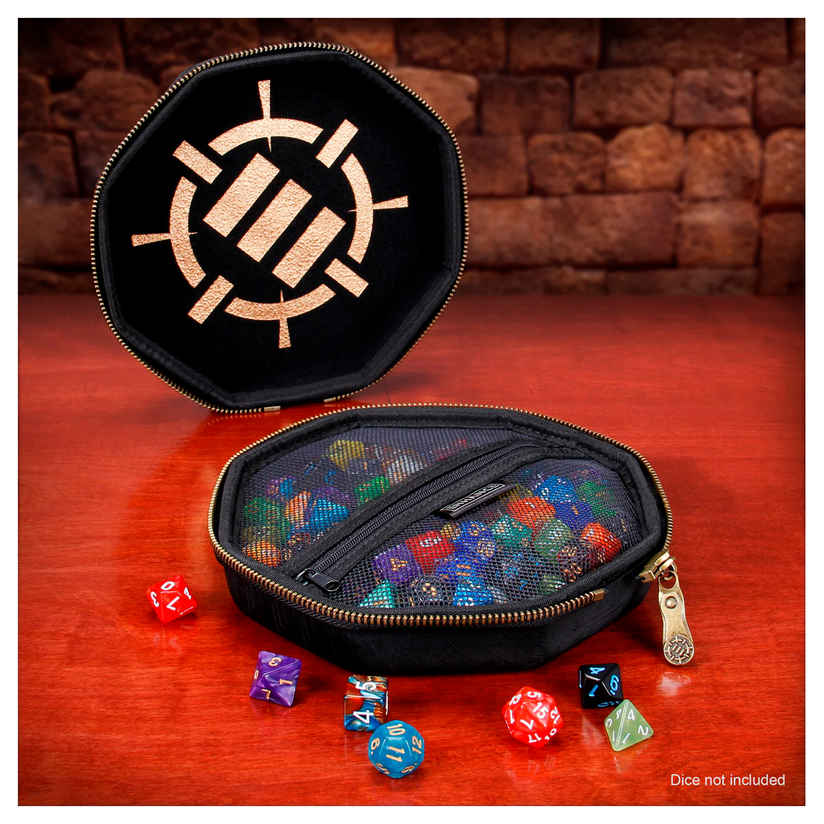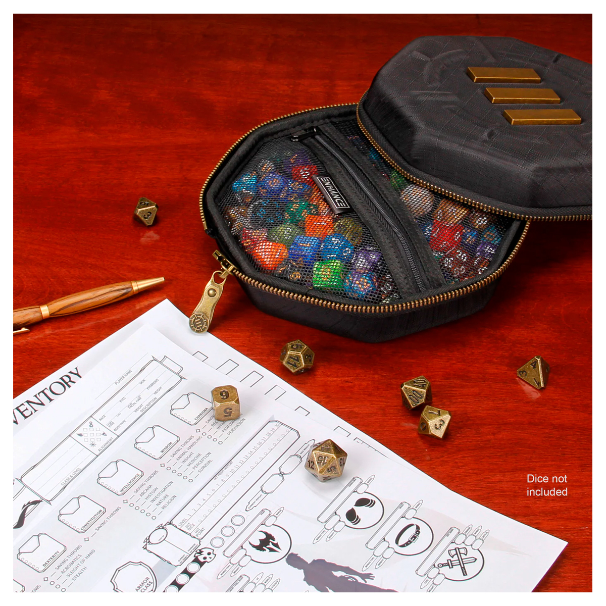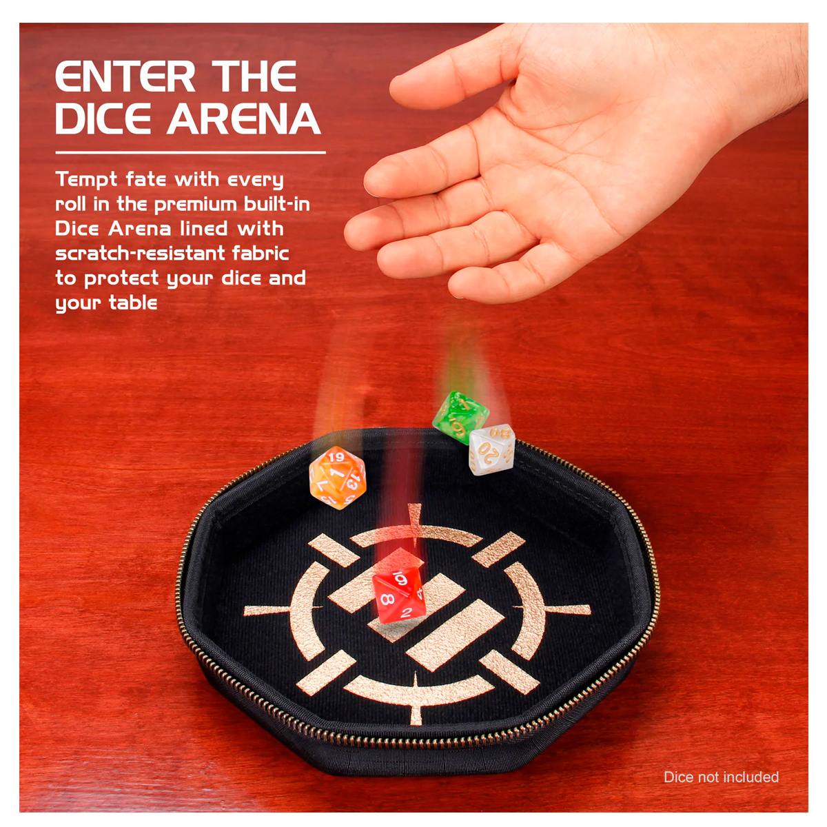 DICE FORTRESS STORAGE: Heavy duty zippers and a spacious covered section with scratch-resistant lining store up to 150+ dice in an easy to reach location for your next game night