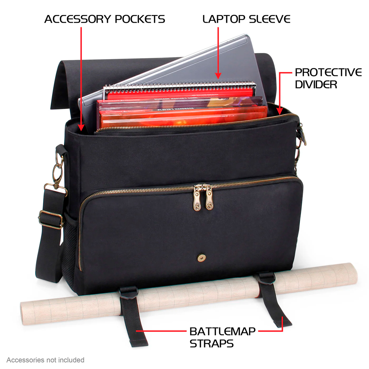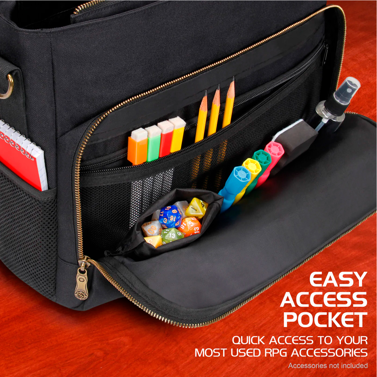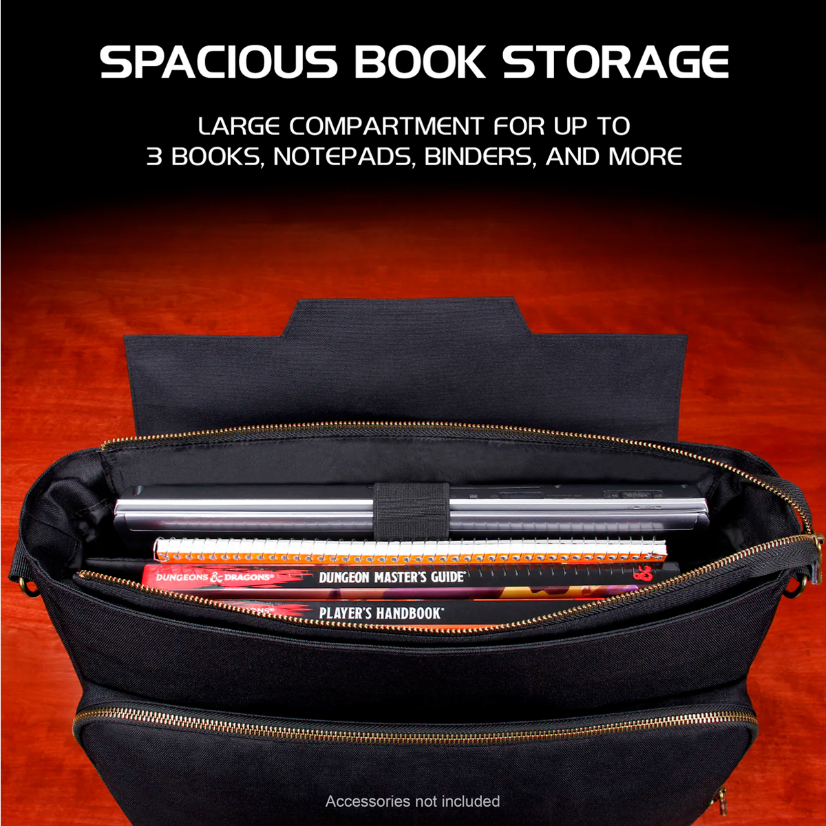ESSENTIAL PLAYER’S BAG: Crossbody style messenger bag with room for up to 4 of your favorite RPG books complete with a padded divider to organize binders, character sheets and more