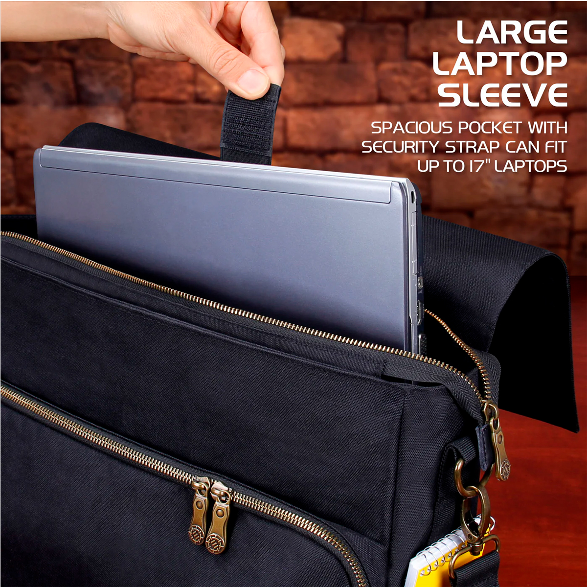 PADDED LAPTOP SLEEVE: Bring your laptop for PDF rule reference, digital character sheets, or notetaking. The padded compartment with security strap fits up to 17-inch laptops | Slot size: 17 x 9.25 in