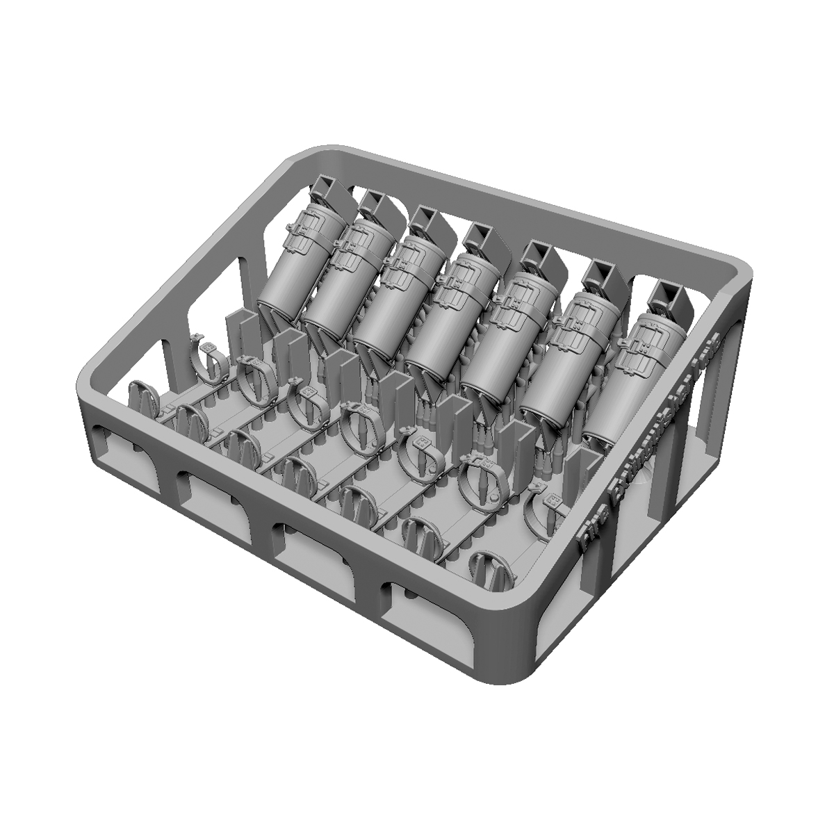 Se trata de un conjunto detallado de piezas impresas en 3D con precisión para reproducir los extintores montados en diversos vehículos, como tanques y carros blindados, utilizados por el ejército alemán durante la Segunda Guerra Mundial.