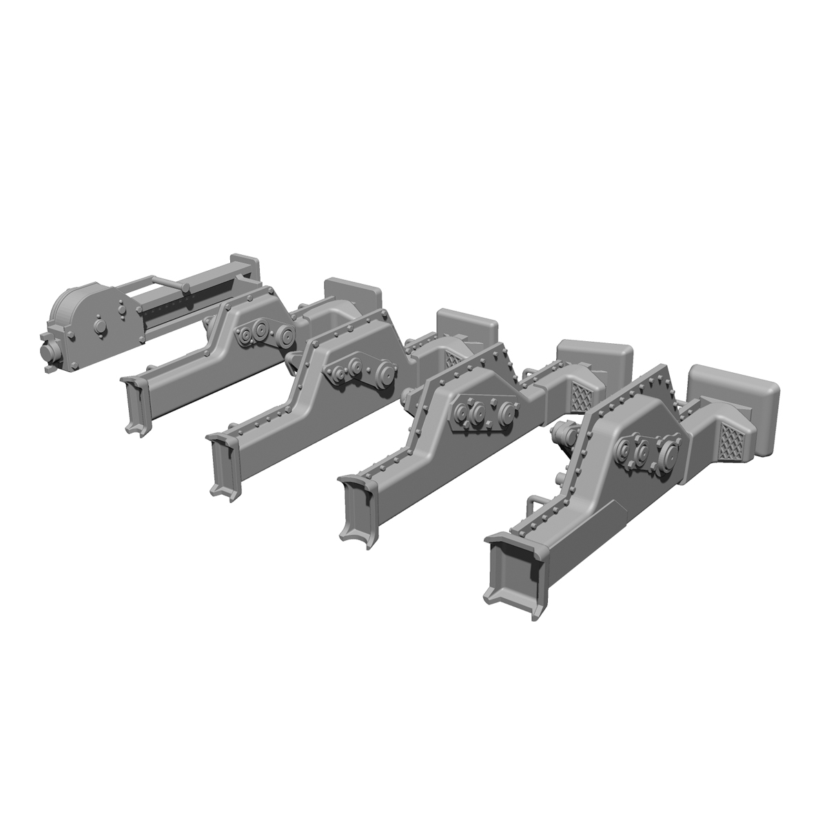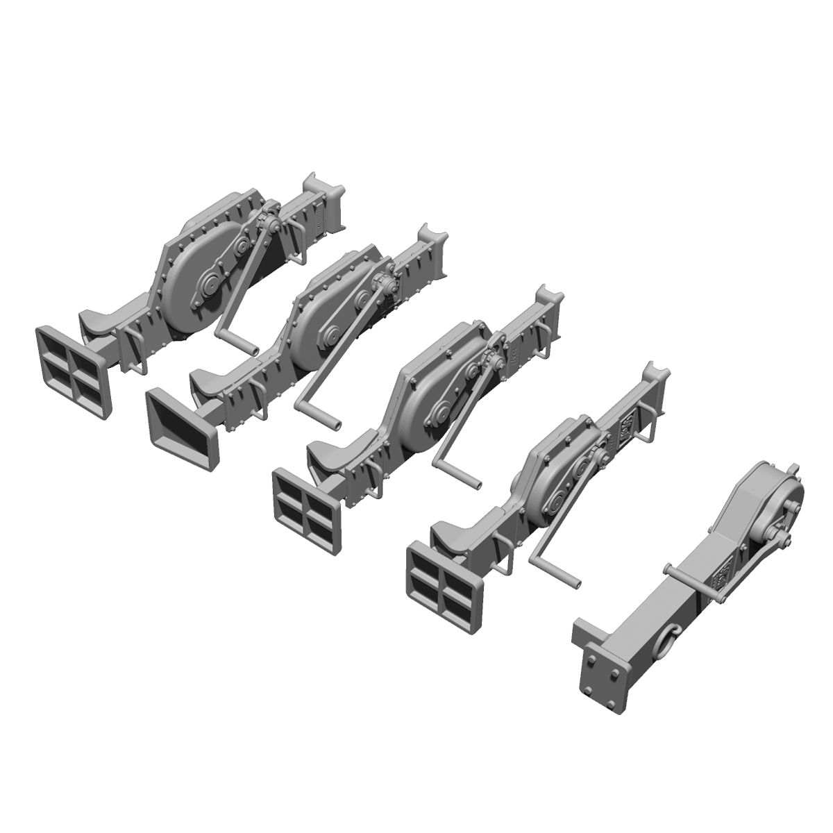 This detail parts set reproduces five types of jacks mounted on German tanks during World War II. Each of the following jacks is included once: