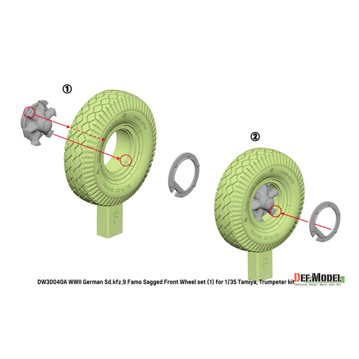 Def Model German Sd.Kfz.9 Famo Sagged front Wheel set ( for Tamiya 1/35)