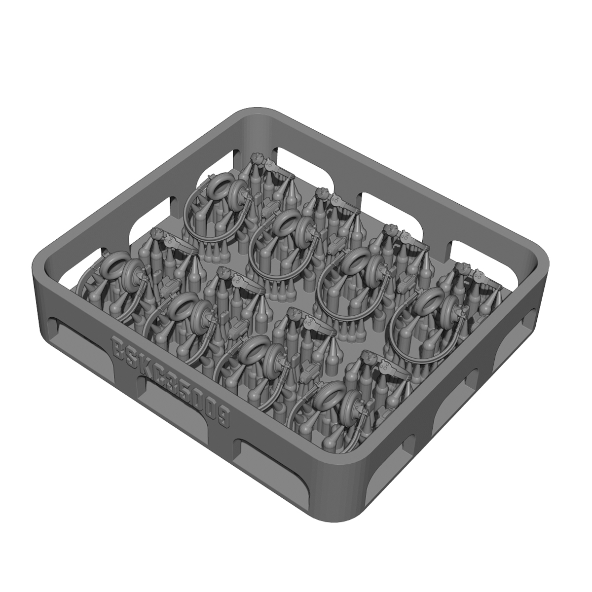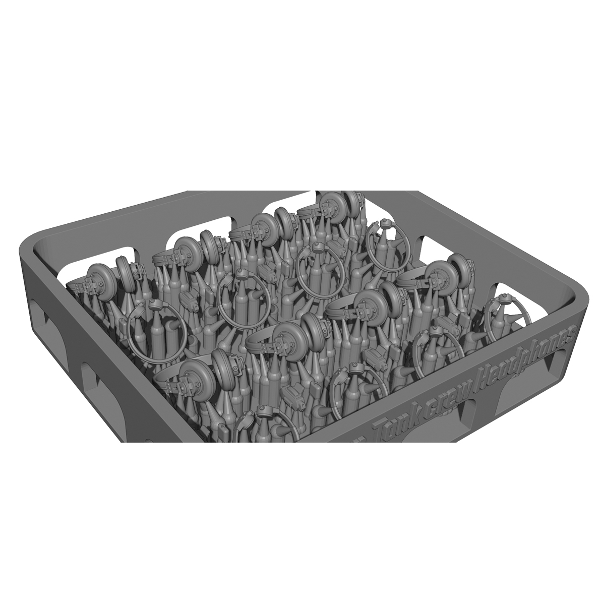 This is a 3D-printed detail parts set recreating communication equipment worn by German tank crewmen during World War II, such as headphones.