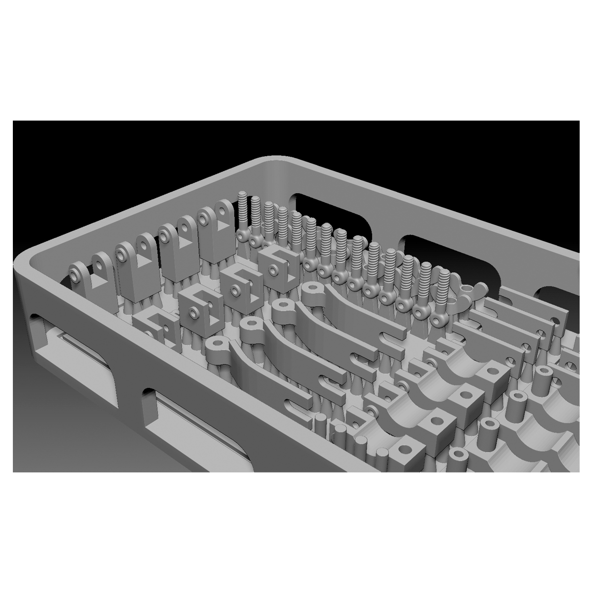 The bracket body, hinges, wing nuts, and bolts are separate parts, allowing for movement identical to the real thing.