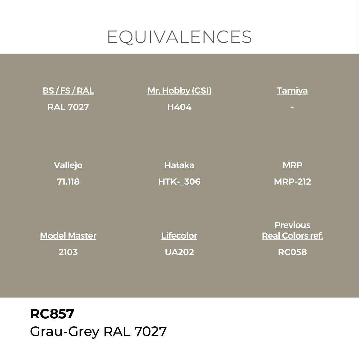 Used for painting vehicles and other equipment of the German Army in the so-called second tropical scheme (Tropen 2) intended for use in Africa and Crete from March 1942 until February 1943. According to the army regulations RAL 7027 should cover 1/3 of vehicle’s surface in form of irregular patches with soft edges, with the remainder being painted in RAL 8020.