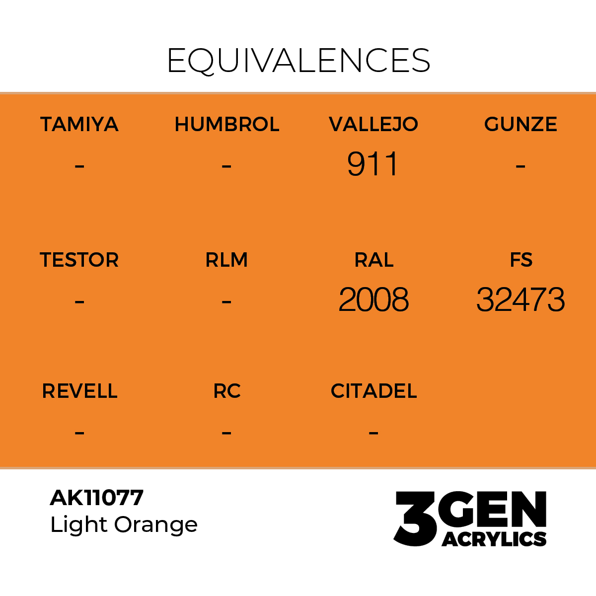 La etiqueta general. El punto naranja es el elemento que destaca en un rango de colores diseñados para cualquier tipo de modelista. La etiqueta clara y fácilmente identificable, incluye el nombre del color y su referencia en la parte superior