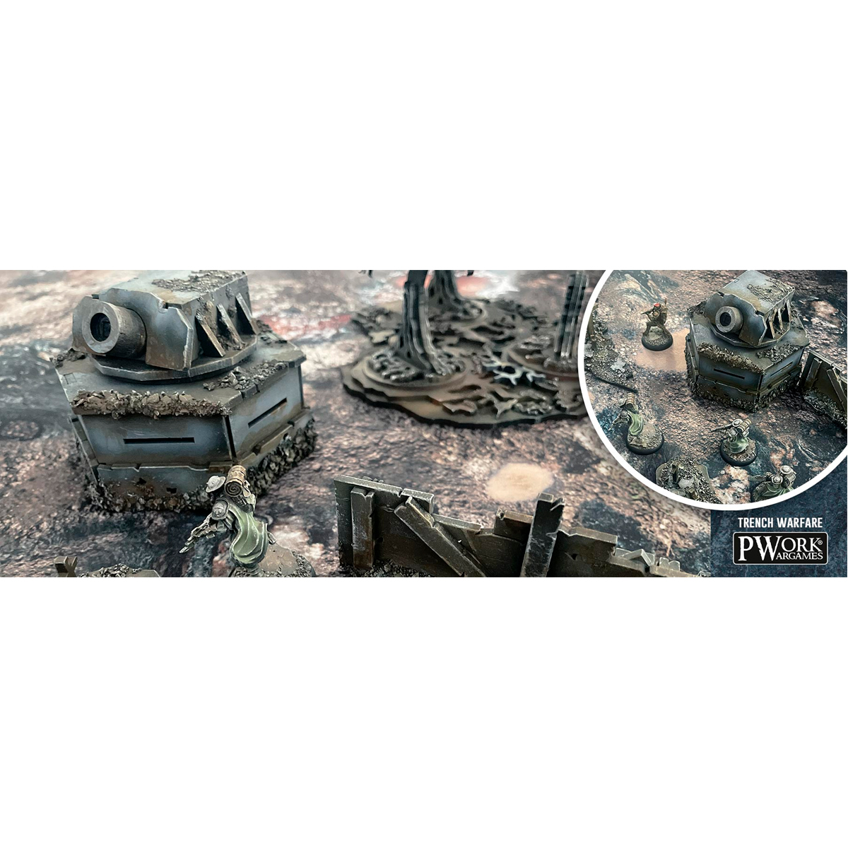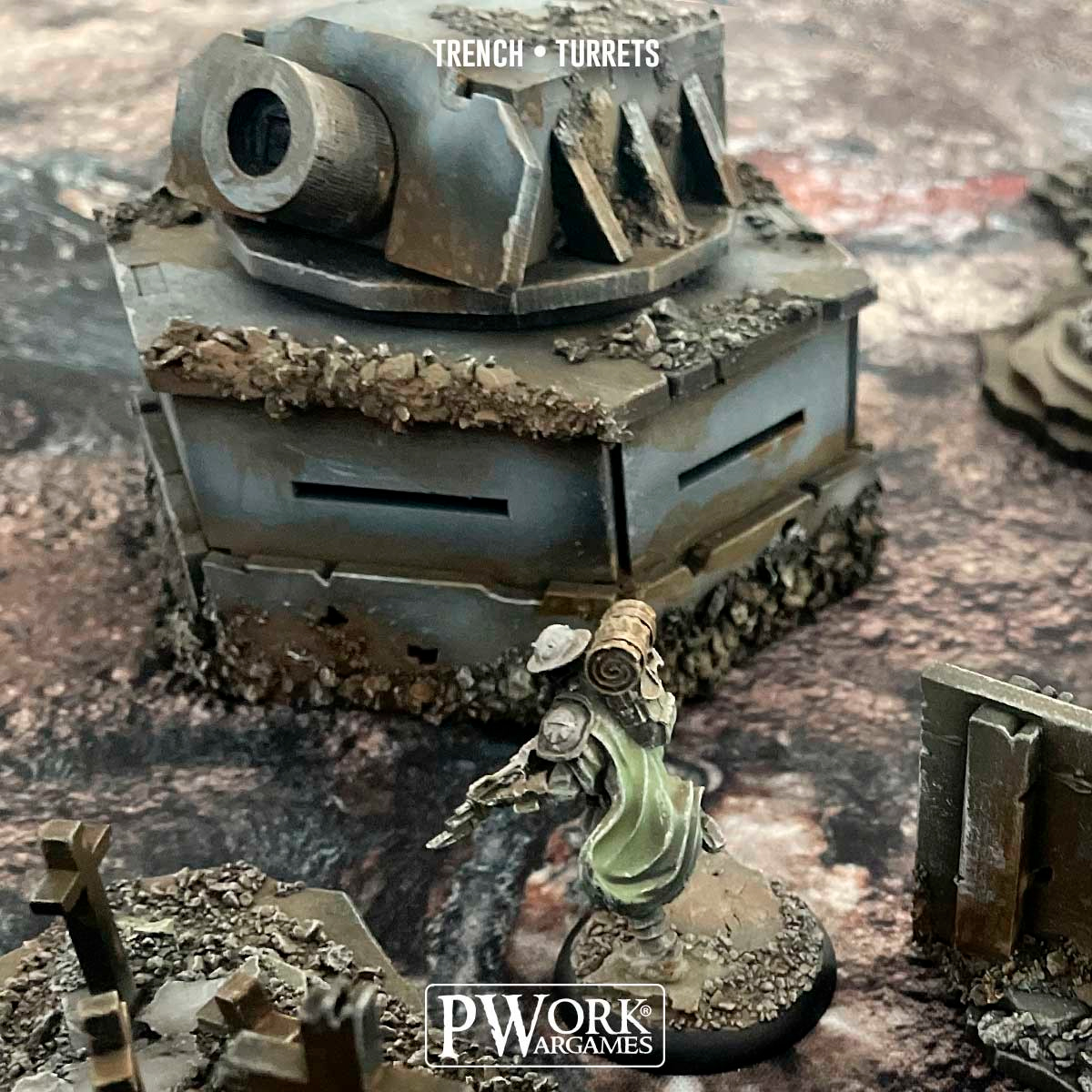 Trench Barricades – Pwork Wargames The kit includes 2 Turrets, which you can place flexibly to build complex defensive positions or safe passages across the battlefield. Made of durable 3mm MDF, easy to assemble and paint, this kit is a perfect addition to any Trench Crusade-inspired or grimdark-themed scenario. Trench Turrets can be combined with other elements from the Trench Battlefield line and the Trench Warfare game mat to create a fully themed battlefield.