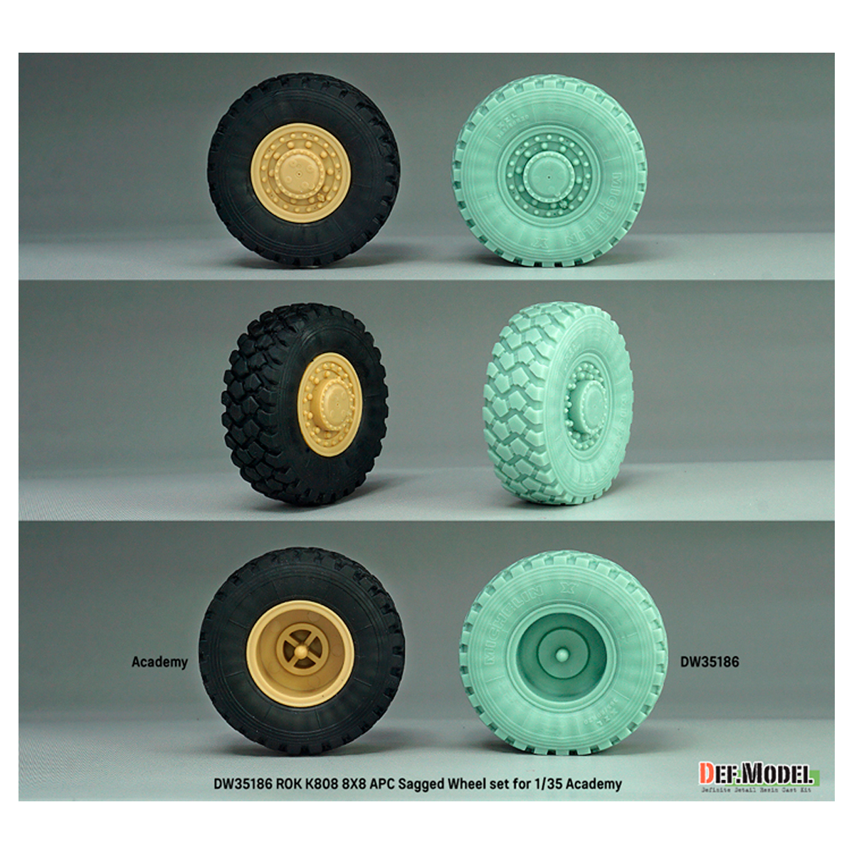 Def Model ROK K808 8X8 APC Sagged wheel set- Mich.XZL (for Academy 1/35 kit)