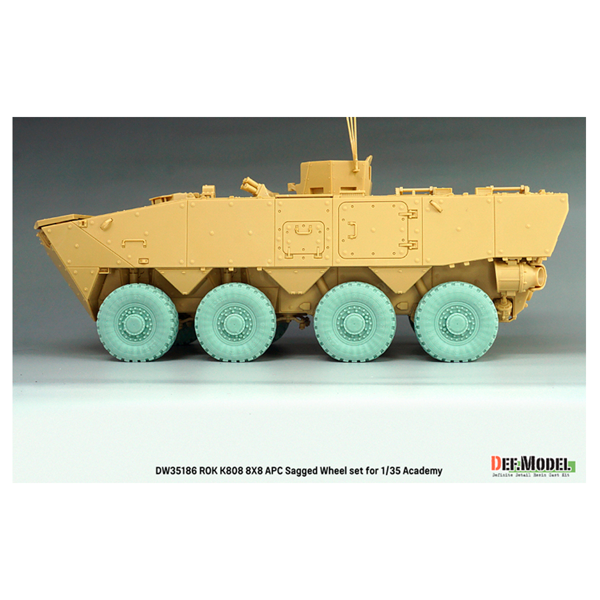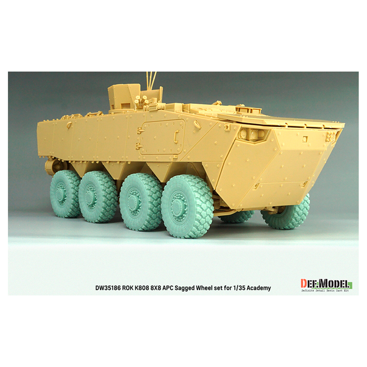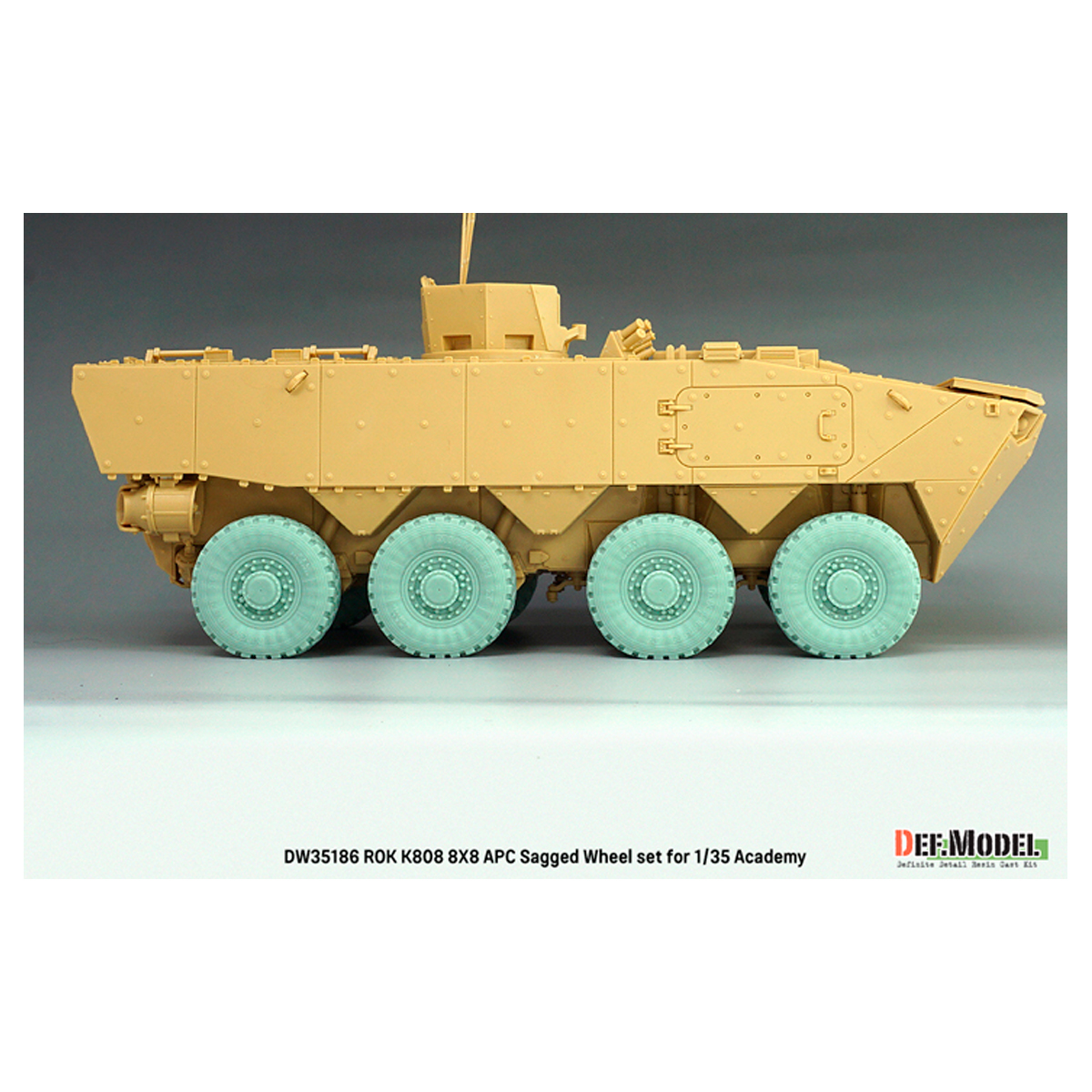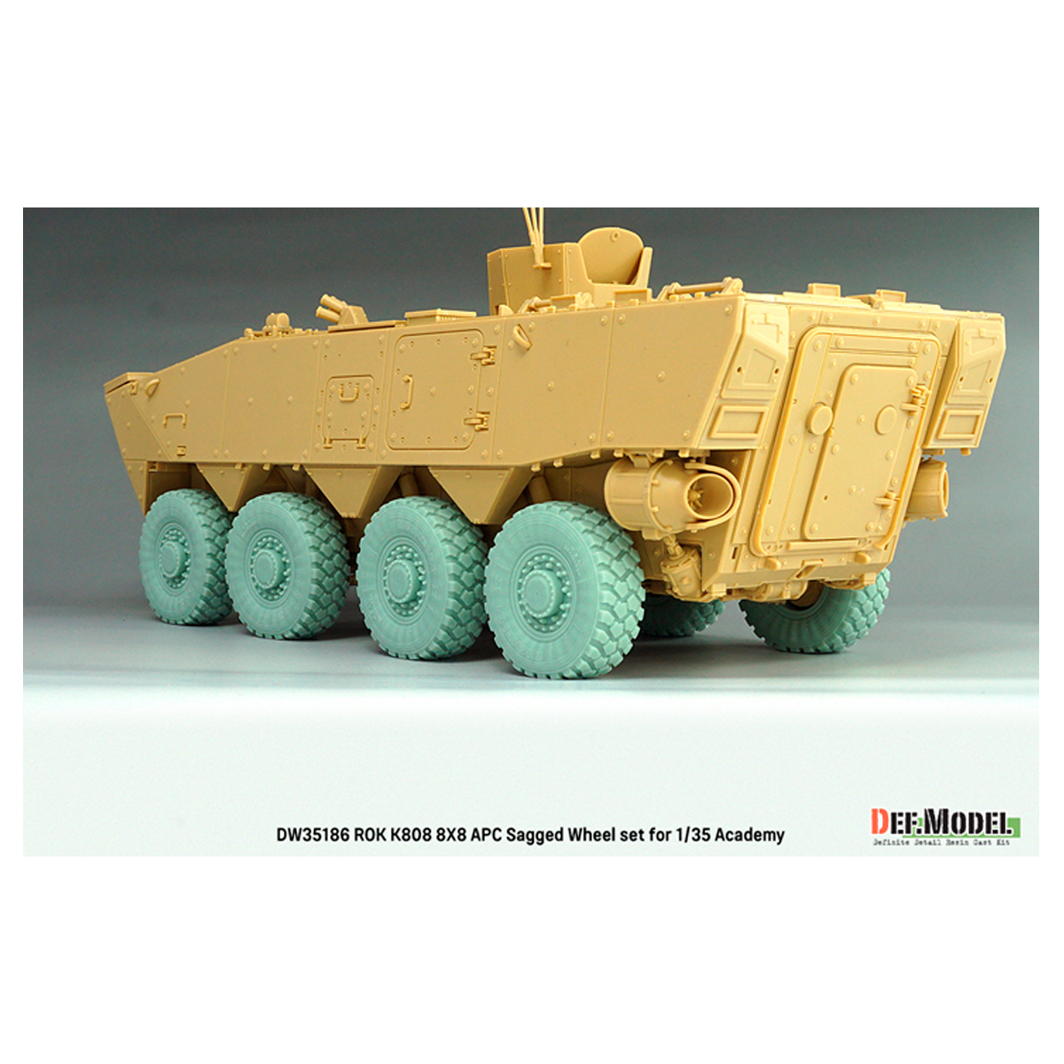 - ROK Army K808 8X8 Armoured Personal Carriar(APC) sagged wheel set for Academy 1/35 kit.