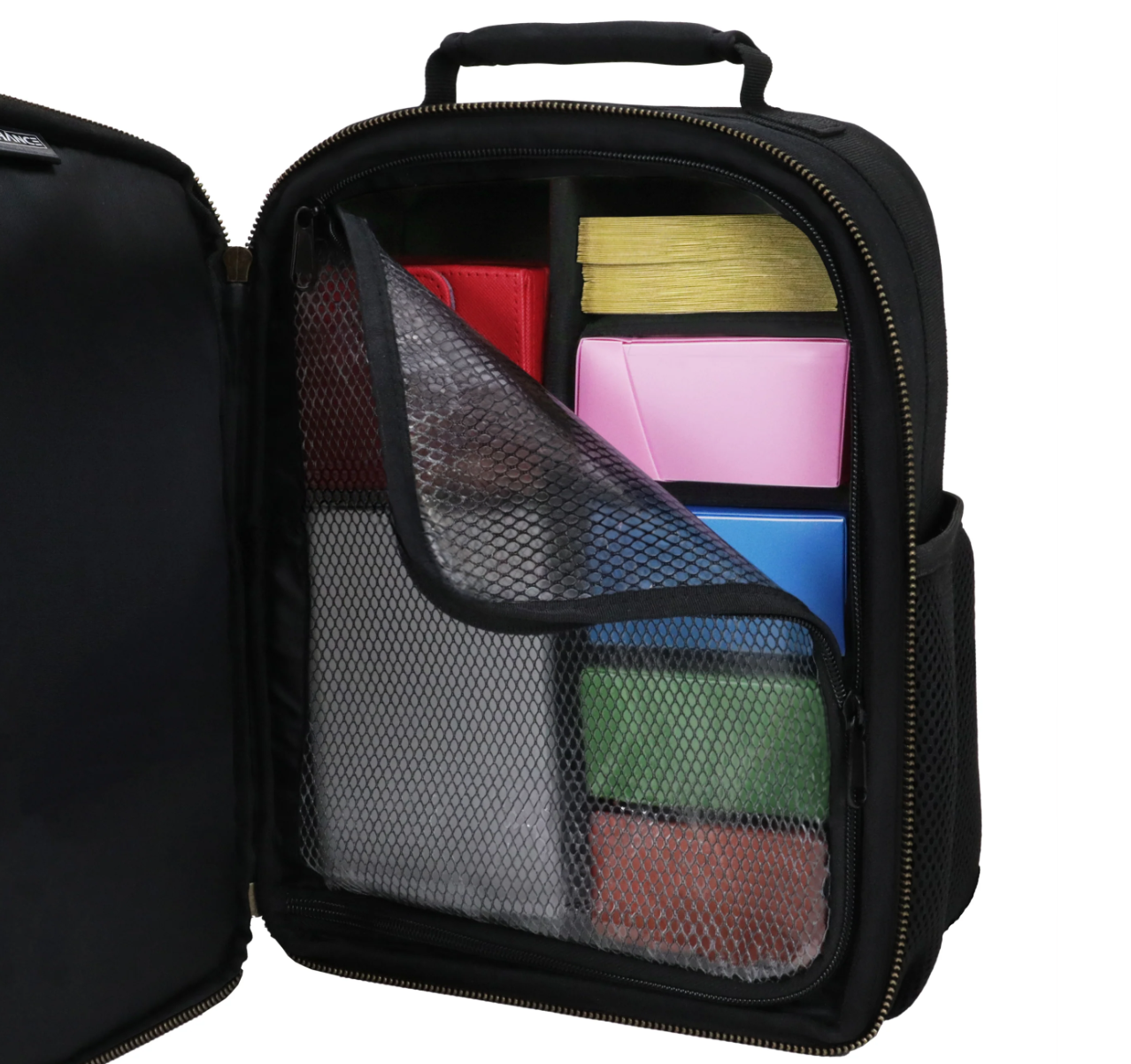 FRONT ACCESORY POCKET: The Front of the compact tcg backpack is designed to booster packs, pencils/pens, dice bag, top loader, mtg sleeves, mtg tokens and other tcg bag accessories