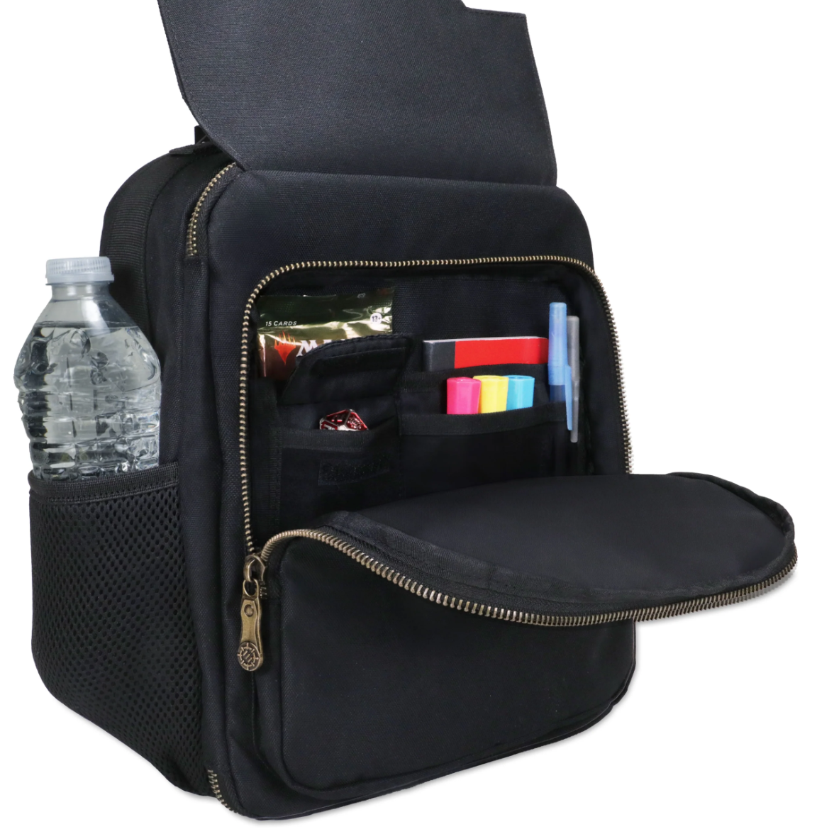 ¡Prepárate para tu próximo torneo o noche de juegos! La mochila ENHANCE para Magic: The Gathering cuenta con un interior espacioso diseñado para guardar hasta dos cajas de cartón de 400 cartas, cajas para mazos, cartas sueltas enfundadas u otros accesorios de MTG. El bolsillo frontal incluye un compartimento para guardar bolsas de dados, lápices/bolígrafos, dados sueltos, fichas y otros accesorios que uses en torneos y noches de juegos en tu tienda local.