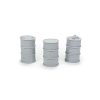 4 jerrycans, 3 metal barrels, 2 plastic drums, 4 traffic cones.