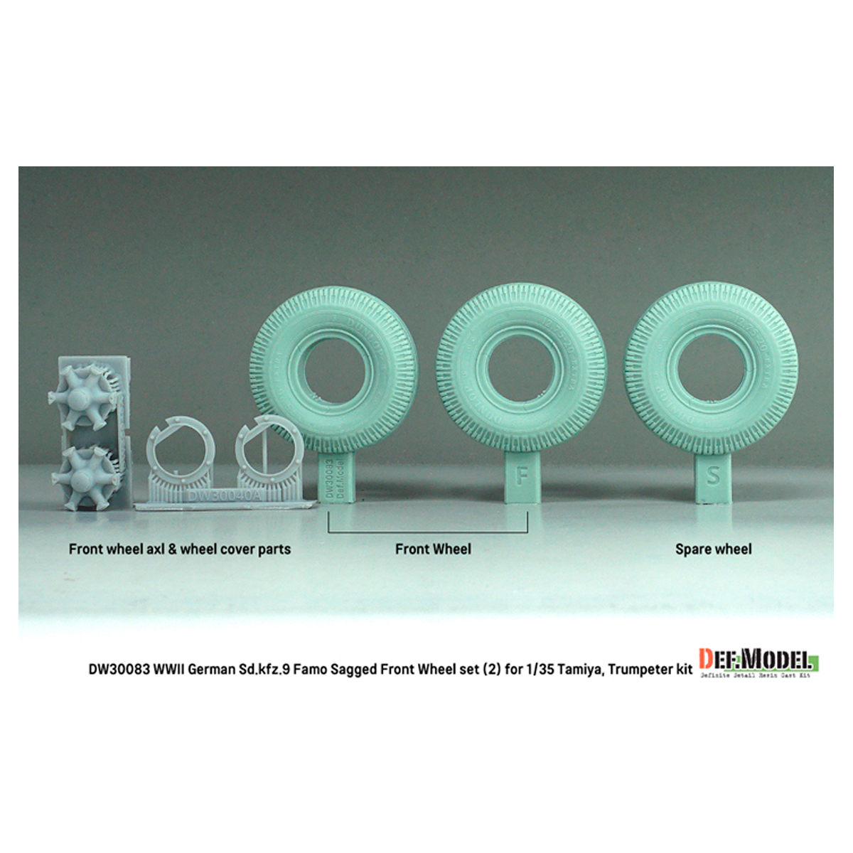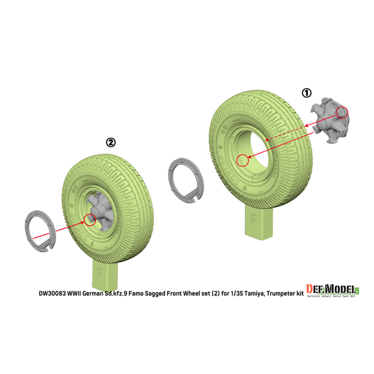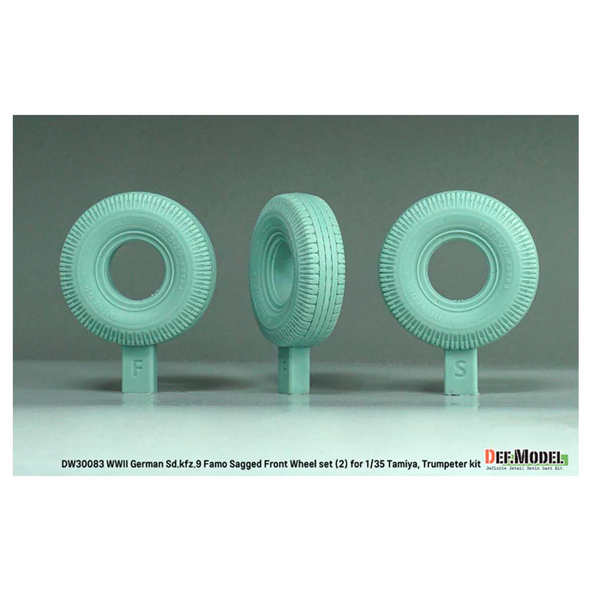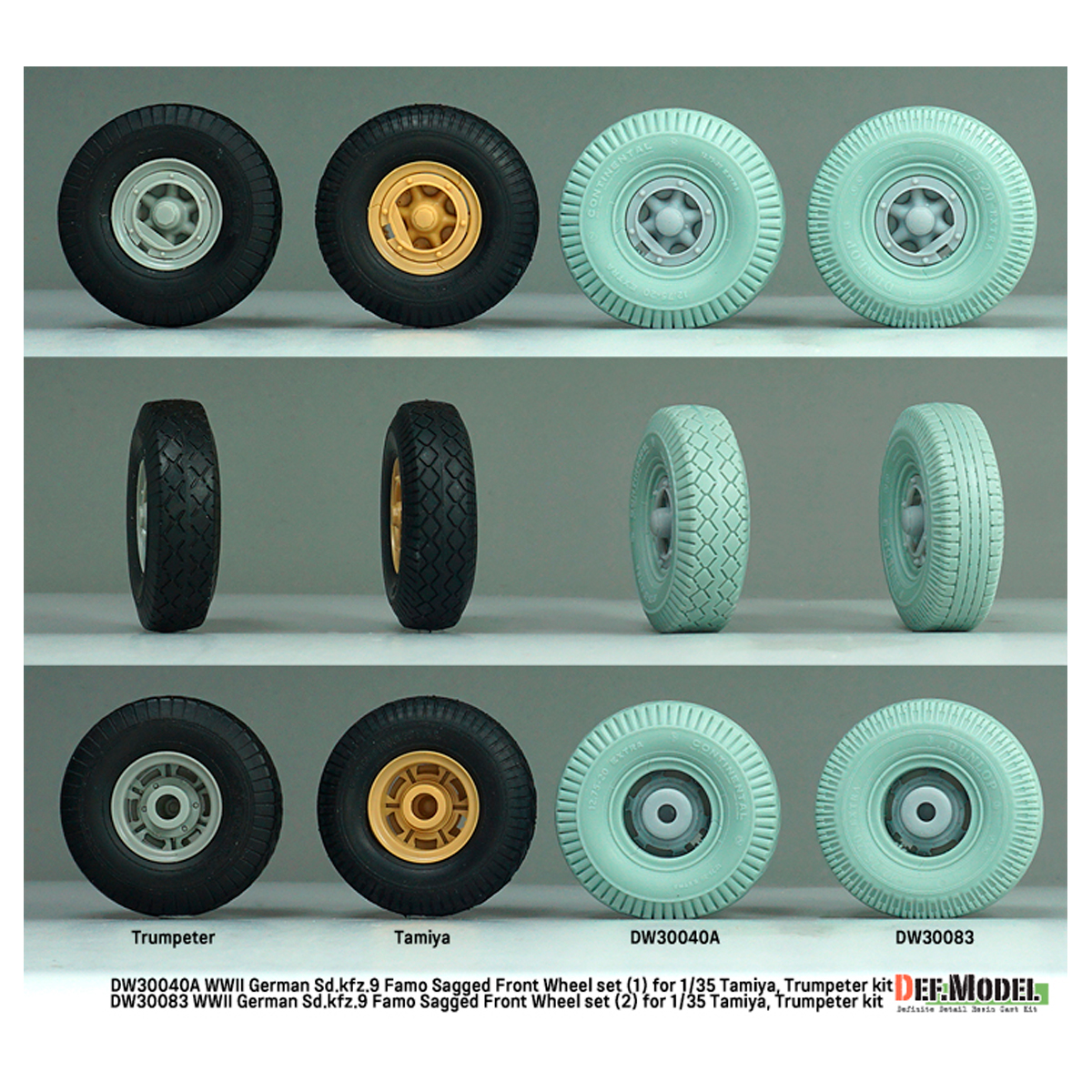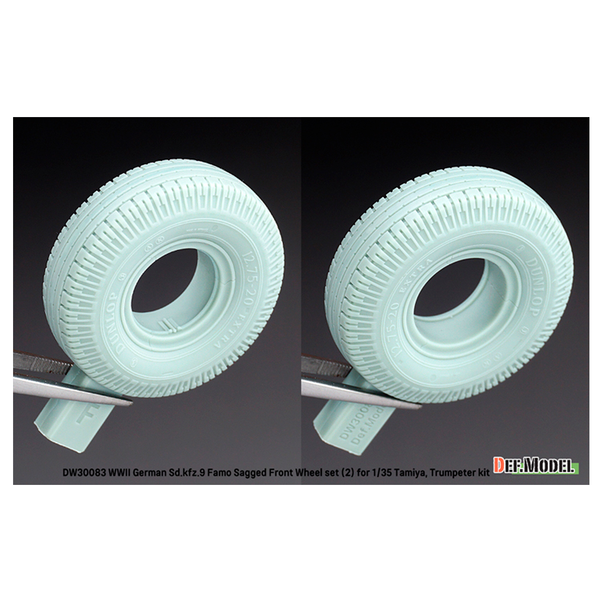 Def Model WW2 German Sd.Kfz.9 Famo Front wheel set (2) – Deutsch Dunlop (for Tamiya, Trumpeter 1/35)
