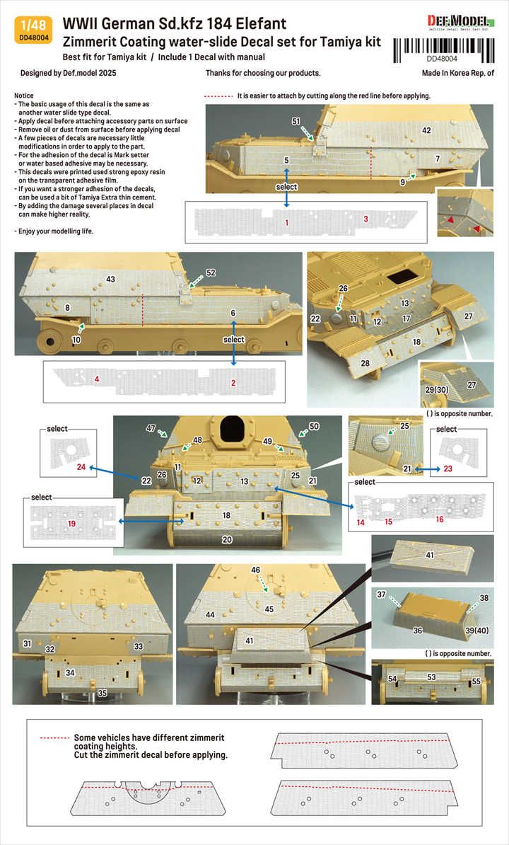 Def Model WWII German Elefand Zimmerit coating decal set (1/48 Tamiya kit)