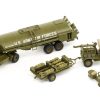 Contenido: Matrices y calcas Coche paquete Cushman Modelo 39: longitud 34mm, anchura 17mmCamión de servicio de bombas Chevrolet M6: longitud 74mm, anchura 25mmTráiler de bombas M5: longitud 77mm, anchura 33mmTractor 4×4 Autocar U-7144-T: longitud 72mm, anchura 33mmTráiler de combustible F-1: longitud 129mm, anchura 36mm